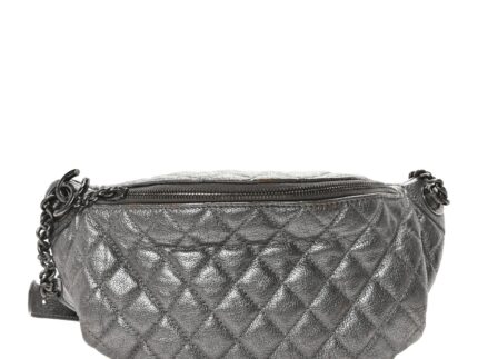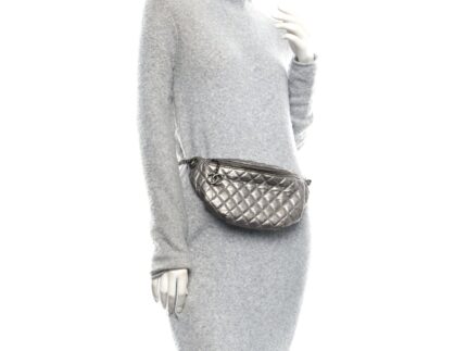 Metallic Goatskin Quilted Banane Waist Bag Fanny Pack Silver