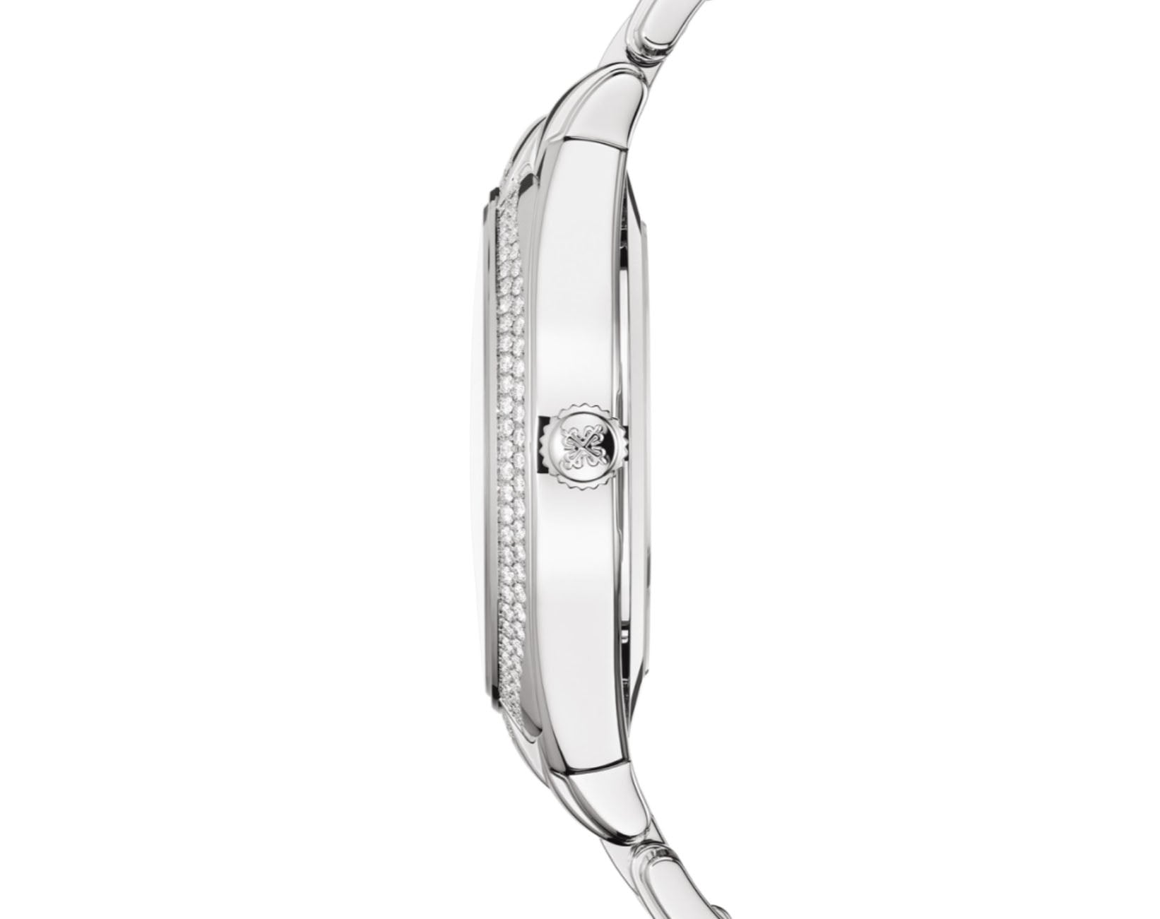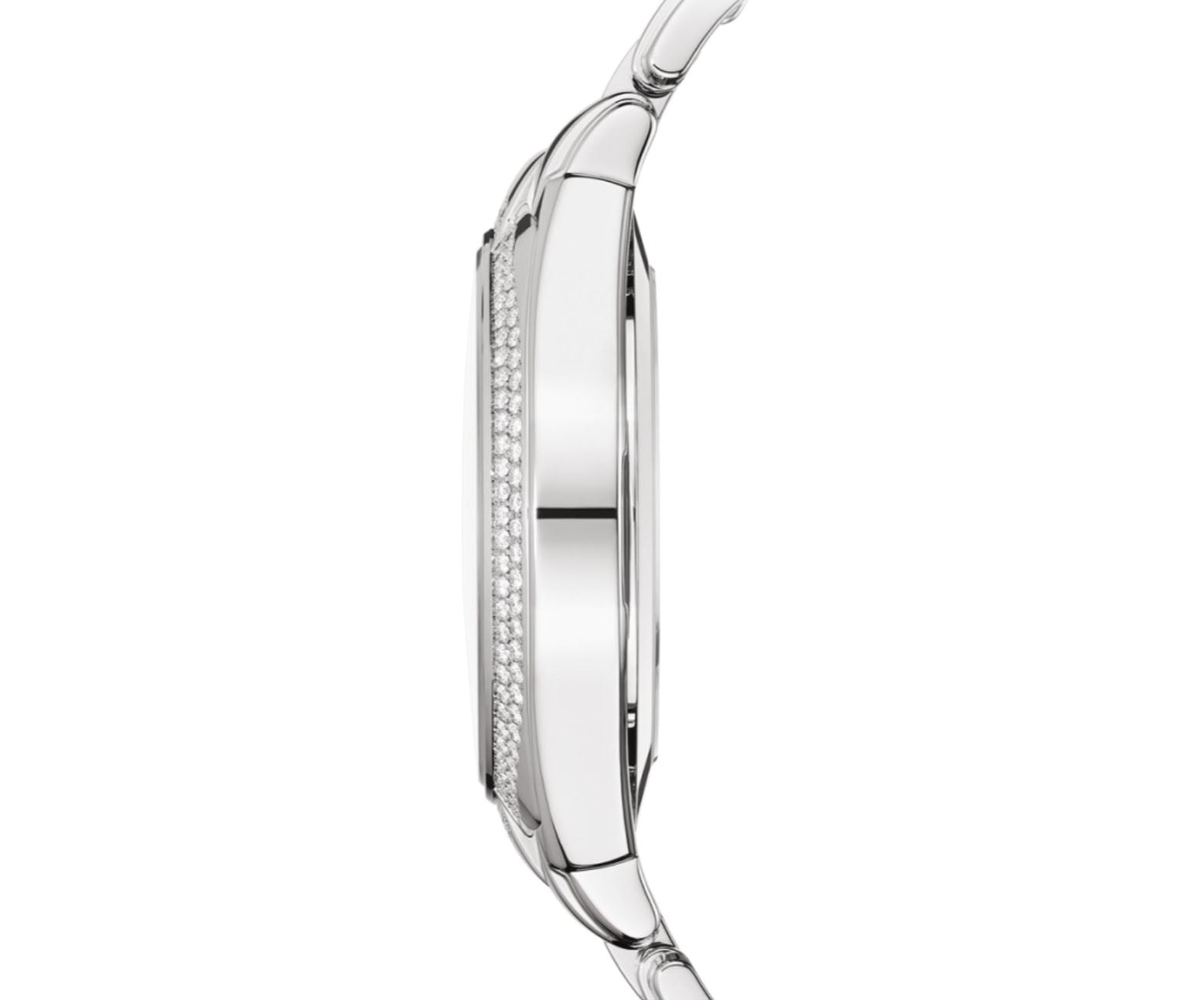 Case is made of mirror finished stainless steel as is the bracelet mounted on the watch. The bezel is set with a total of 160 diamonds, weighing about 0.81 ct.