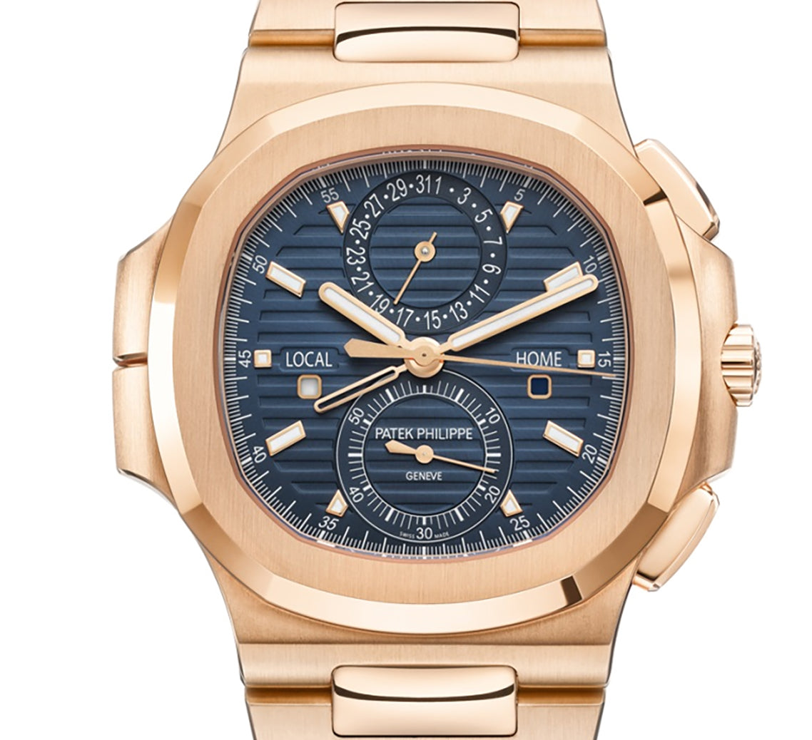 41毫米旅行时间计时表18k玫瑰金蓝色表盘