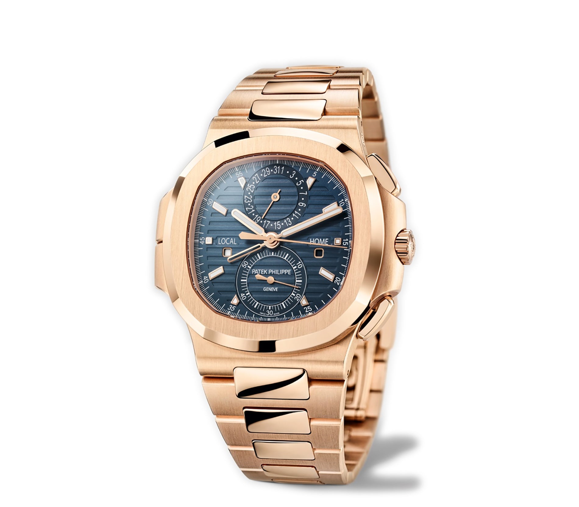 39mm Travel Time 18k Rose Gold Blue-Grey Dial Quartz