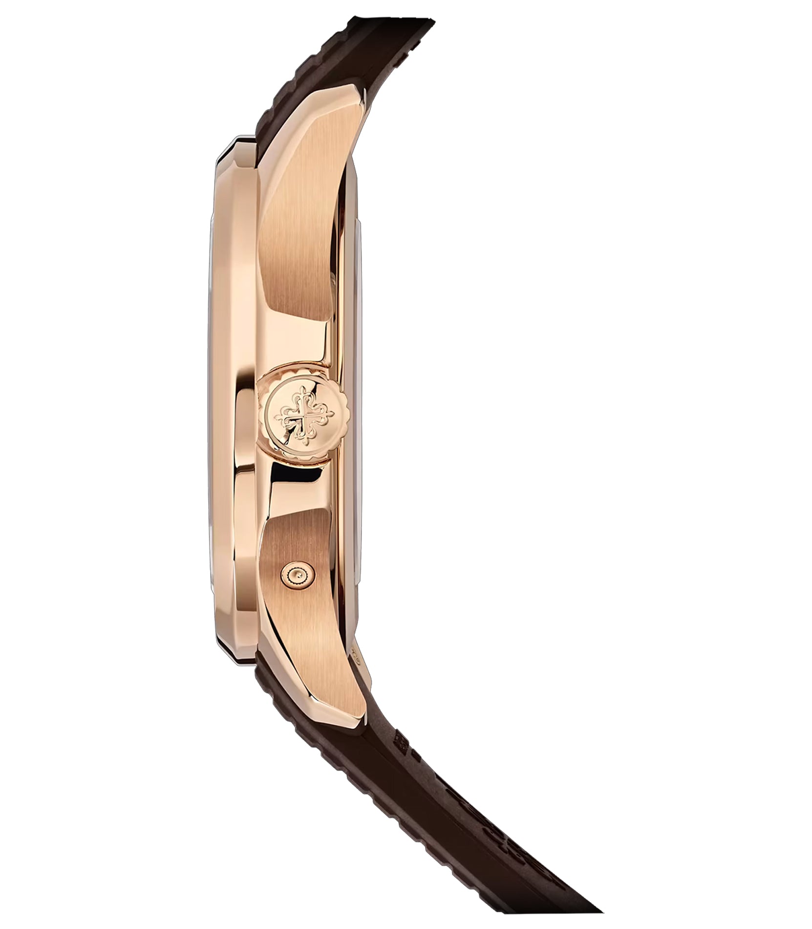 Case is made of 18k rose gold with a combination of both mirror and satin finishes. The bezel mounted atop is of 18k rose gold with a satin finished base and a mirror finish edge. As for the strap, it is a brown composite tropical (composite because they added certain elements to rubber in order to enhance the durability) rubber strap that features a design which compliments the dial.
