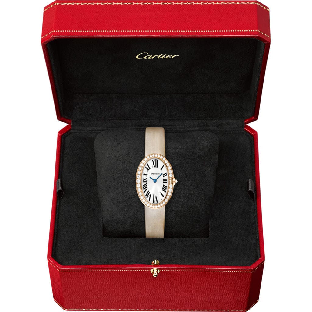 The 1906 design of the watch that would later be christened the Baignoire demonstrated Cartier’s prowess in crafting watchmaking forms. An elegant ellipse uniquely forged in a single line, the Baignoire watch is the essence of Cartier style: an unmatched marriage of purity and timeless chic.