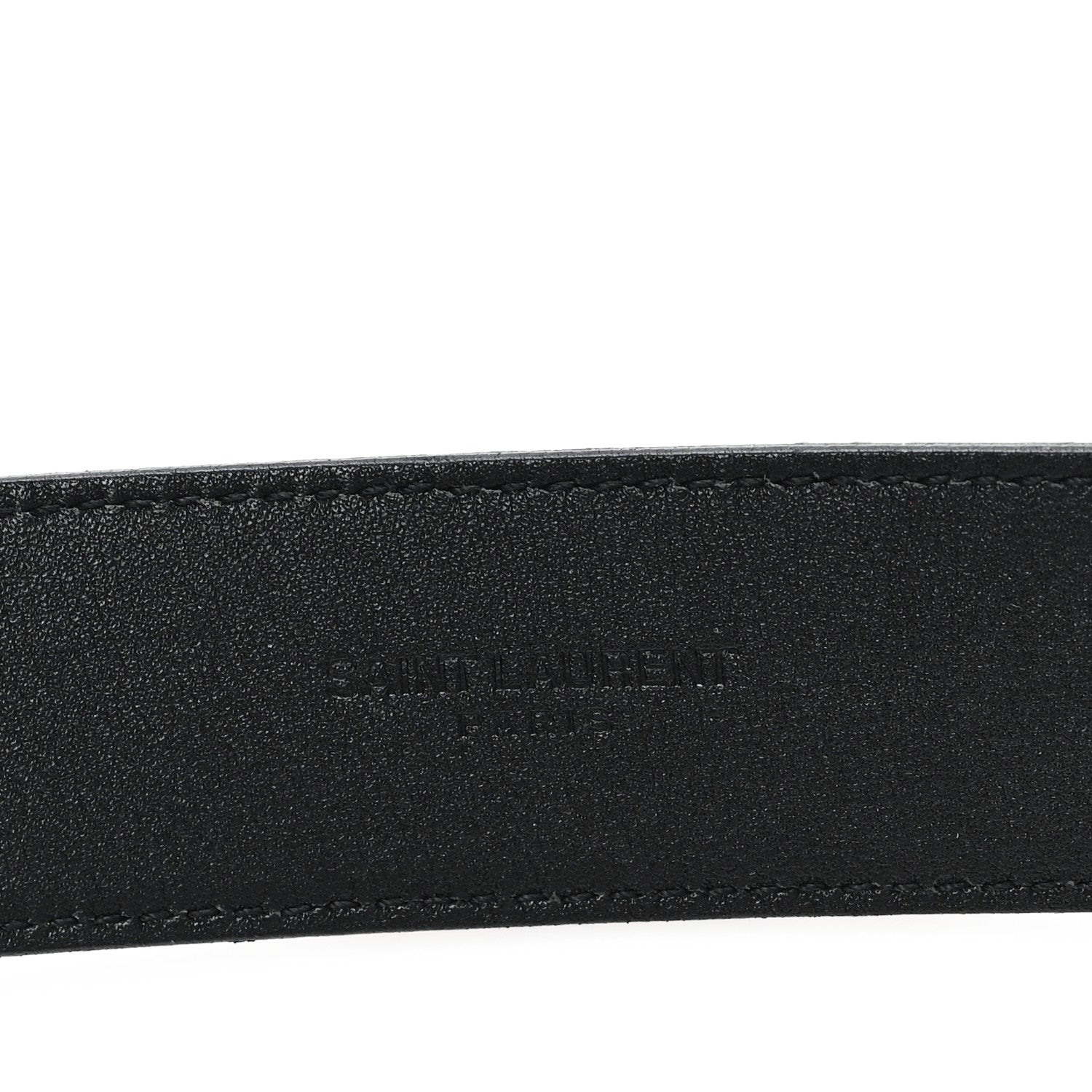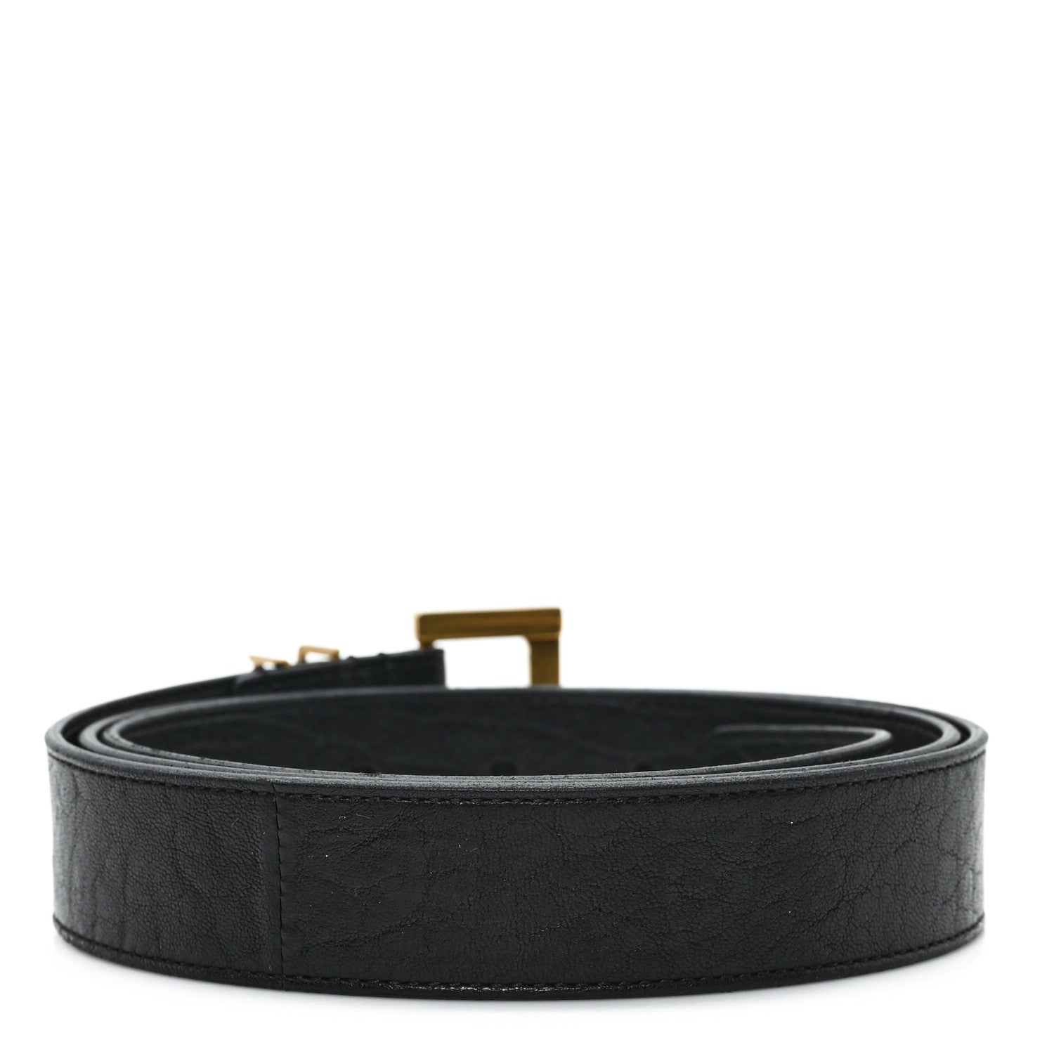 This is an authentic SAINT LAURENT Smooth Calfskin Monogram Square Buckle Belt size 85 or 34 in Black. This is a stylish modern style belt, crafted of smooth calfskin leather in black and features a YSL aged gold belt buckle.