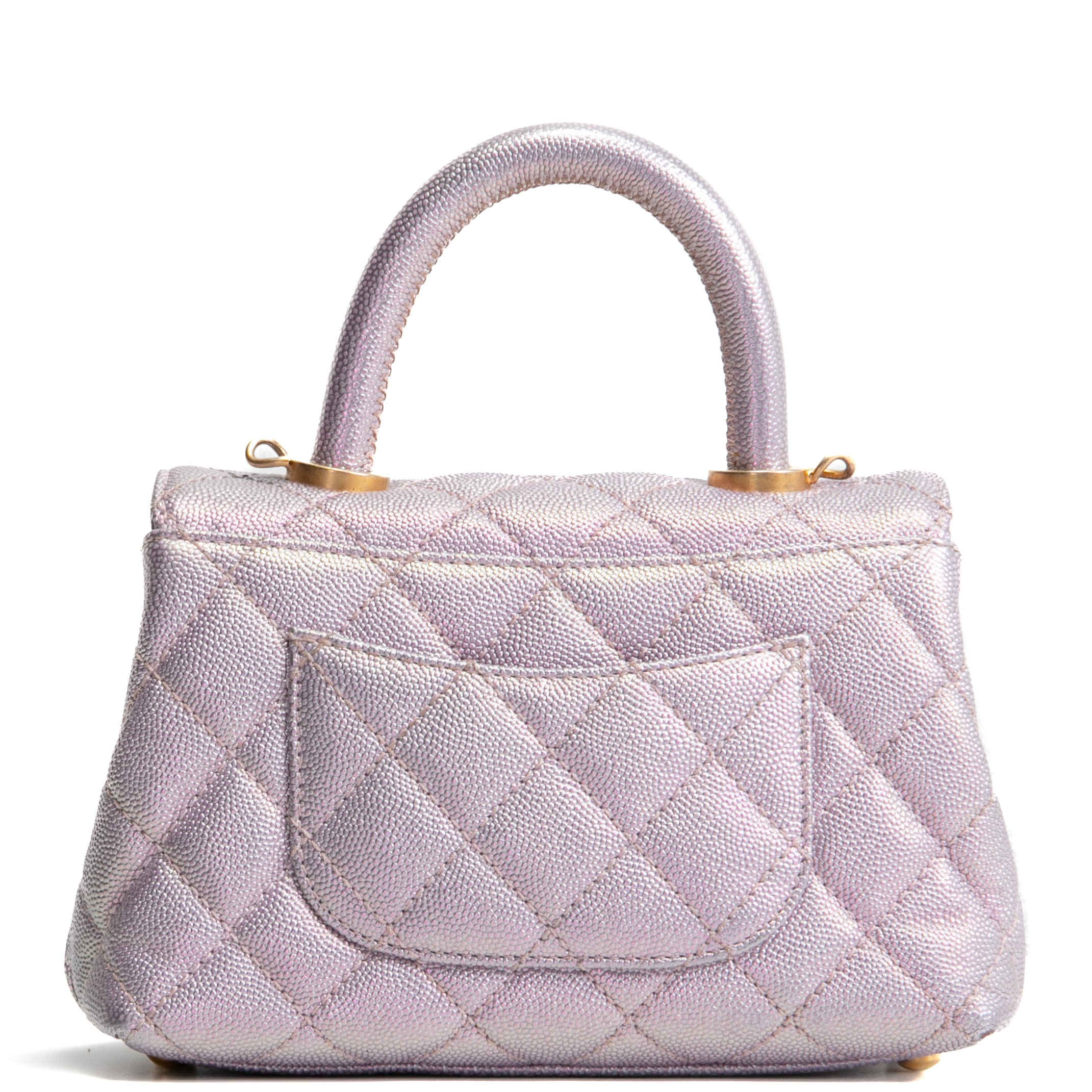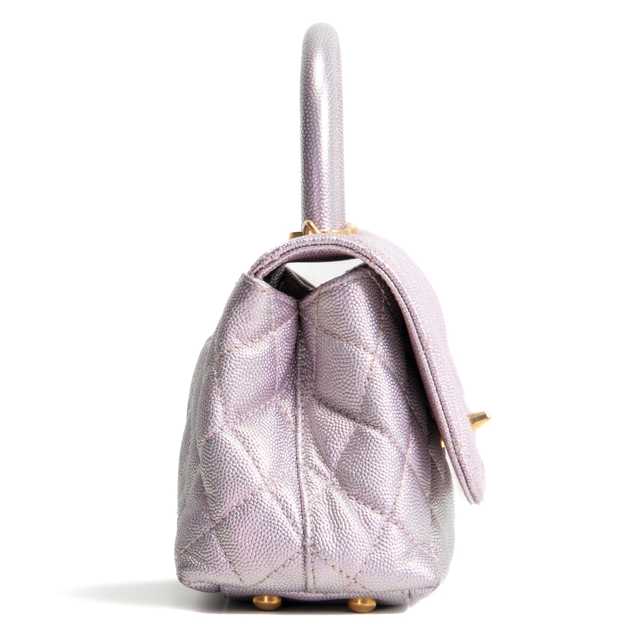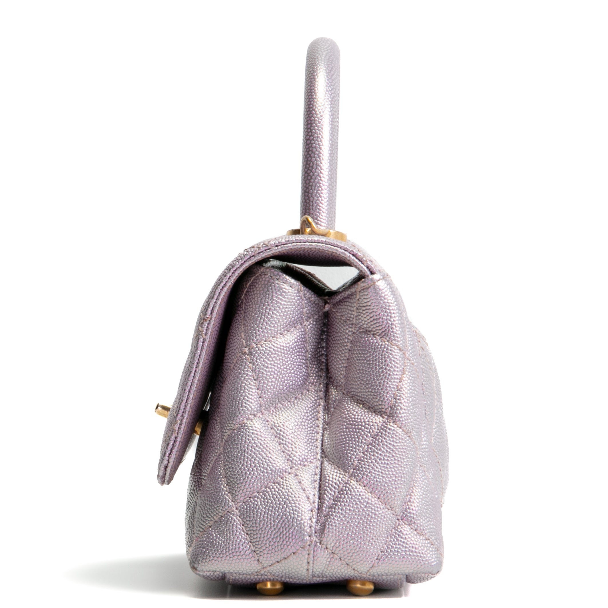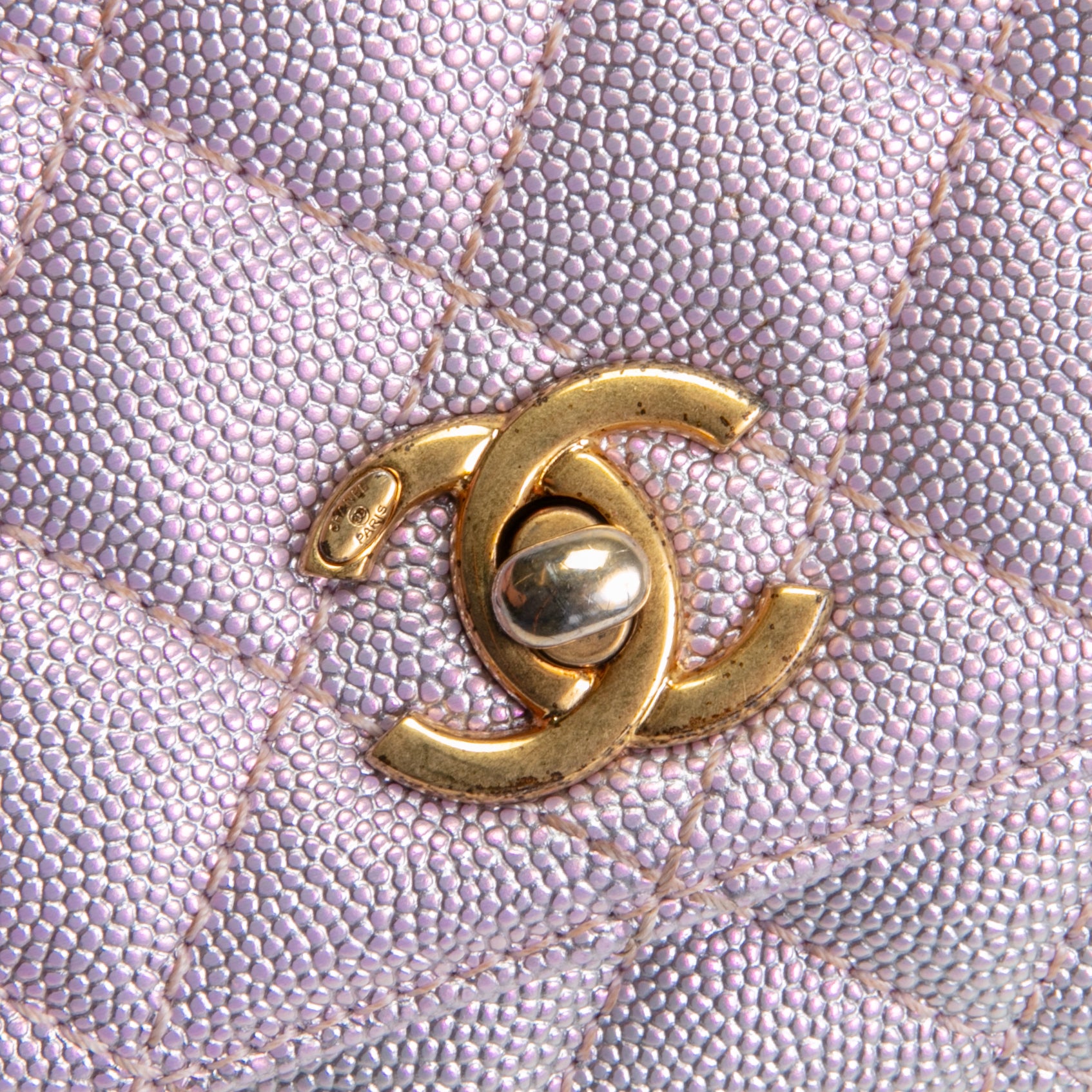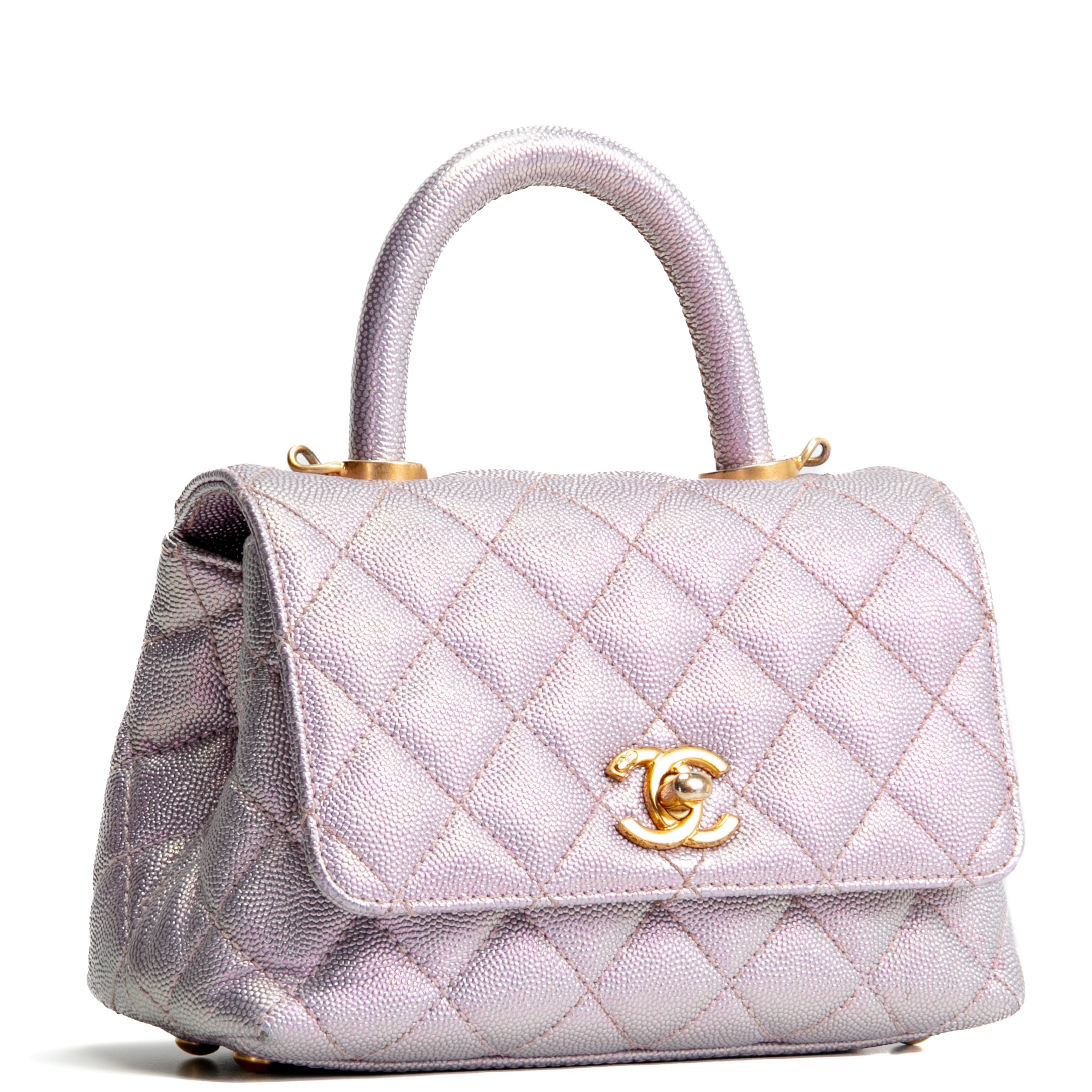 CHANEL Iridescent Caviar Extra Mini Coco Handle Flap Bag – Purple