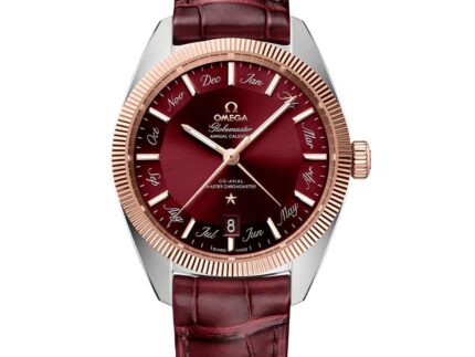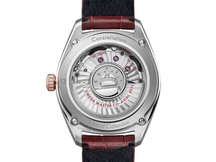 Self-winding movement with Co-Axial escapement. Certified Master Chronometer, approved by METAS, resistant to magnetic fields reaching 15,000 gauss. Free sprung-balance with silicon balance spring, two barrels mounted in series, automatic winding in both directions. Time zone function. Special luxury finish with rhodium-plated rotor and bridges with Geneva waves in arabesque.