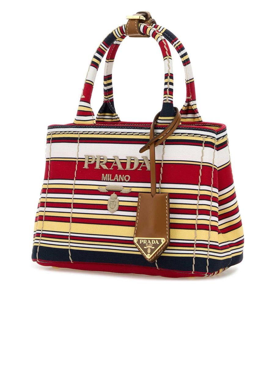 This charming mini handbag is crafted from embroidered canvas and features elegant golden metal finishes. The bag has a versatile design, perfect for adding a touch of sophistication to any casual ensemble. Its compact form makes it an ideal choice for carrying essentials with ease.