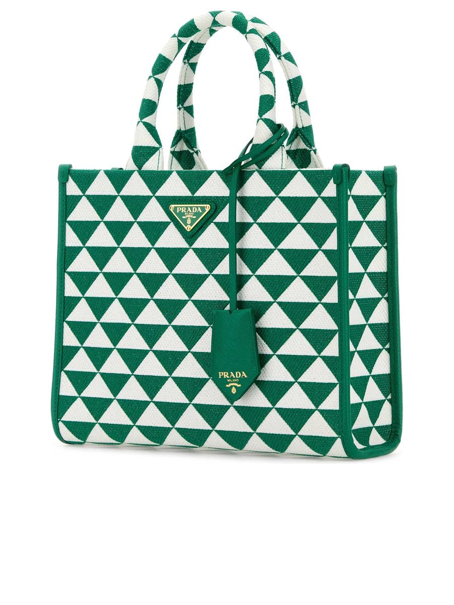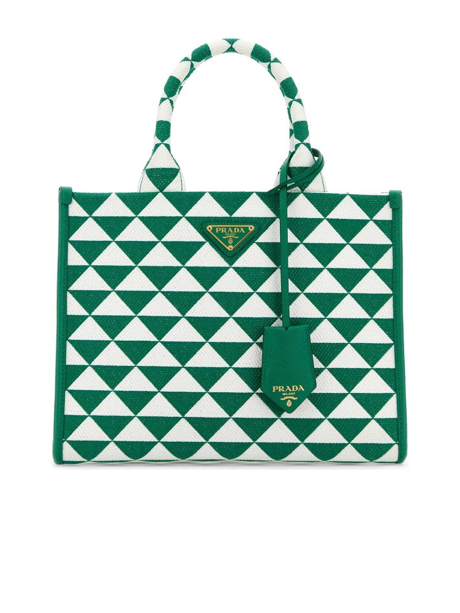 Explore the refined craftsmanship of Prada with the sleek and versatile Embroidered Fabric Small Symbole Shopping Bag. Designed with a sophisticated aesthetic, this handbag is ideal for your daily essentials, featuring a beautifully embroidered motif that elevates its appearance with a touch of elegance.
