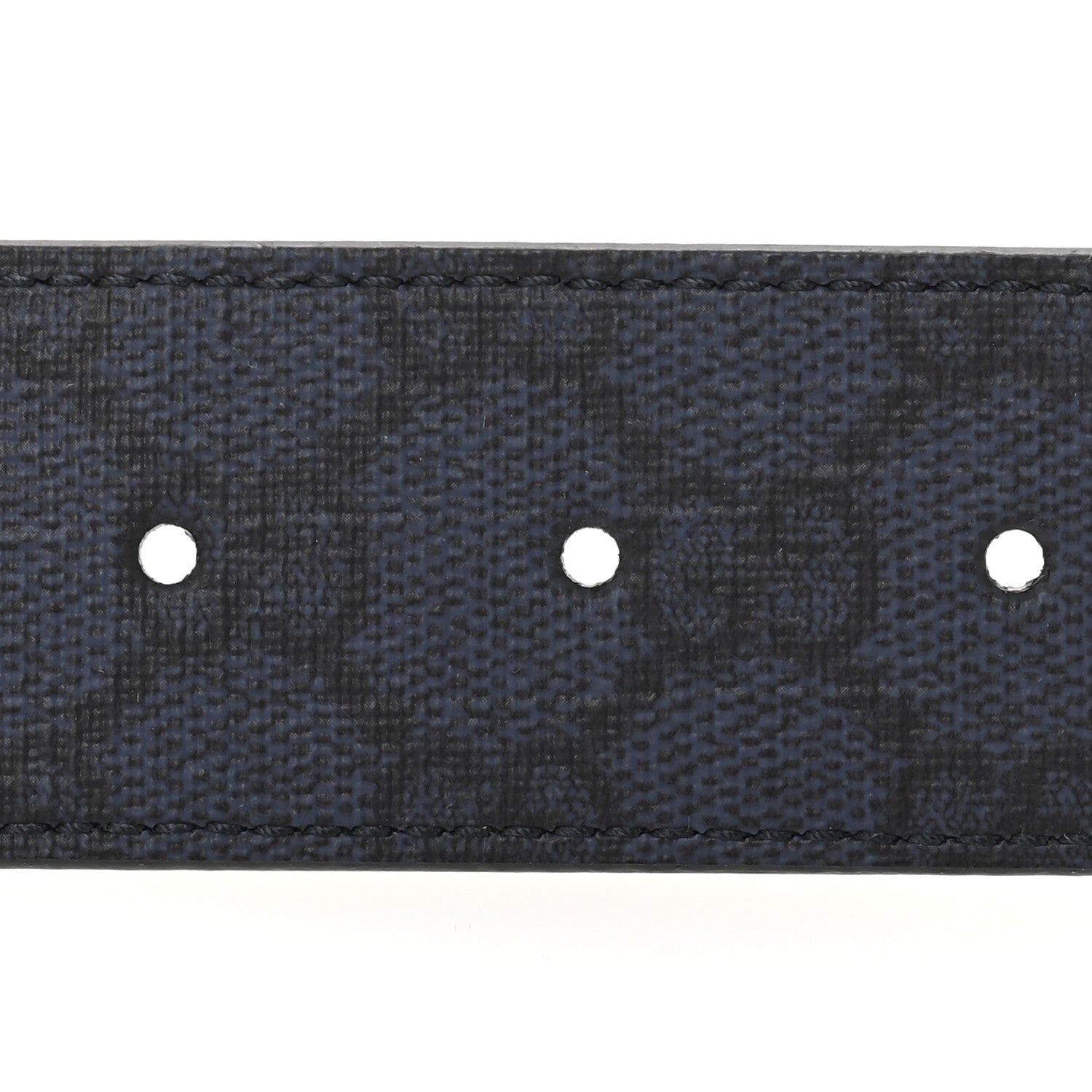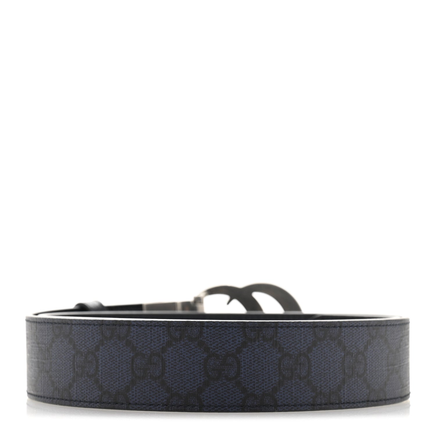 GG Supreme Monogram Plutone Calfskin Palladium Double G Reversible 37mm Belt 90 36 Black Blue