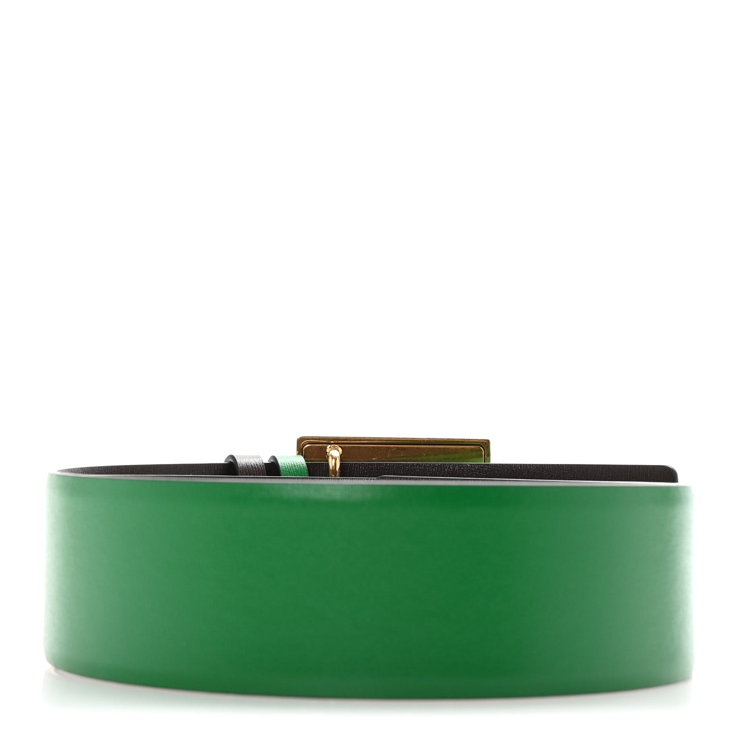 Glossy Calfskin One Stud Reversible Belt 70 28 Green Brown