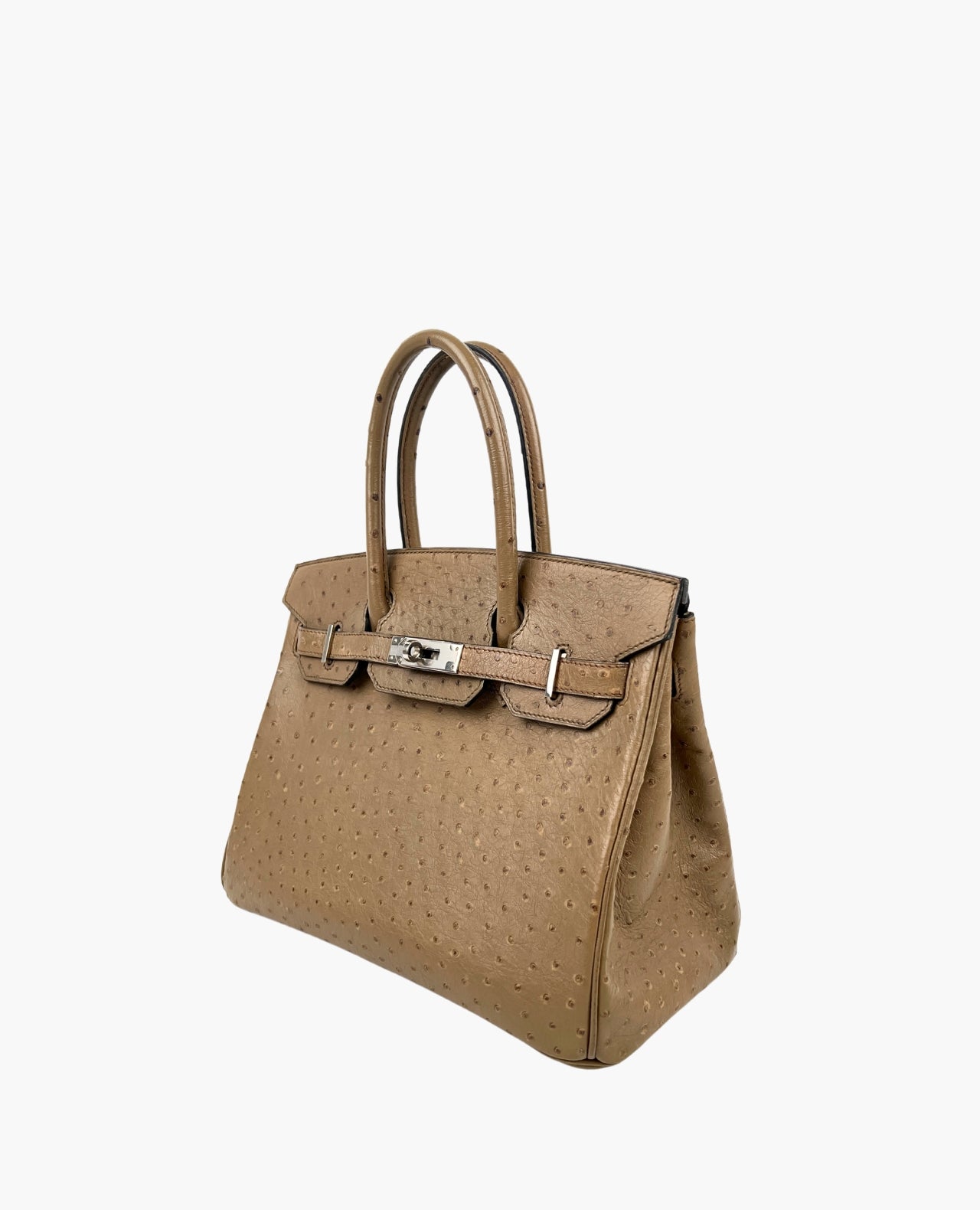 A true statement of luxury and sophistication, the Hermès Birkin 30 in Ostrich leather is a rare and highly sought-after piece. Crafted from exquisite Tabac-colored ostrich leather, this bag showcases the impeccable craftsmanship and timeless elegance that Hermès is renowned for. The unique texture of ostrich leather not only adds a distinctive look but also ensures exceptional durability.