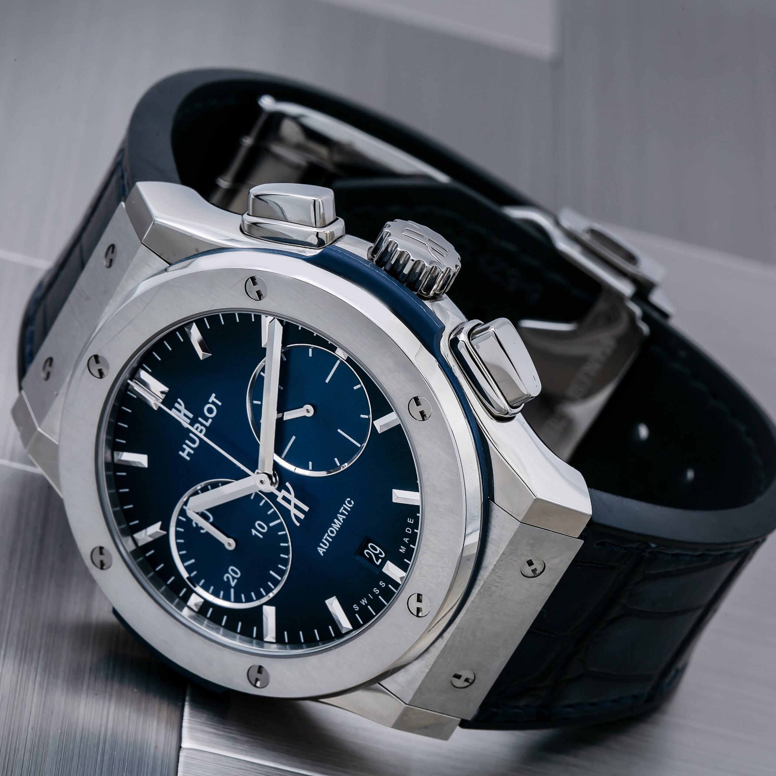 Hublot Classic Fusion Chronograph 521.NX.7170.LR 45MM Blue Dial With Crocodile Skin Bracelet
