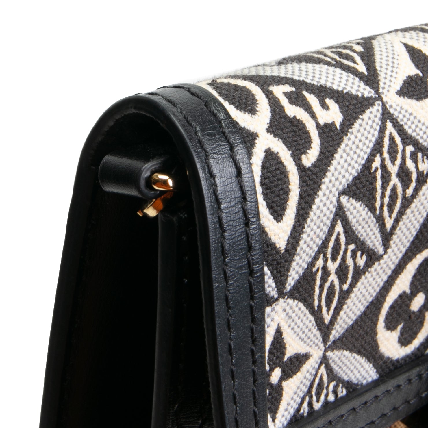 - Grey & Black Monogram Jacquard Patterned Canvas & Leather Trim