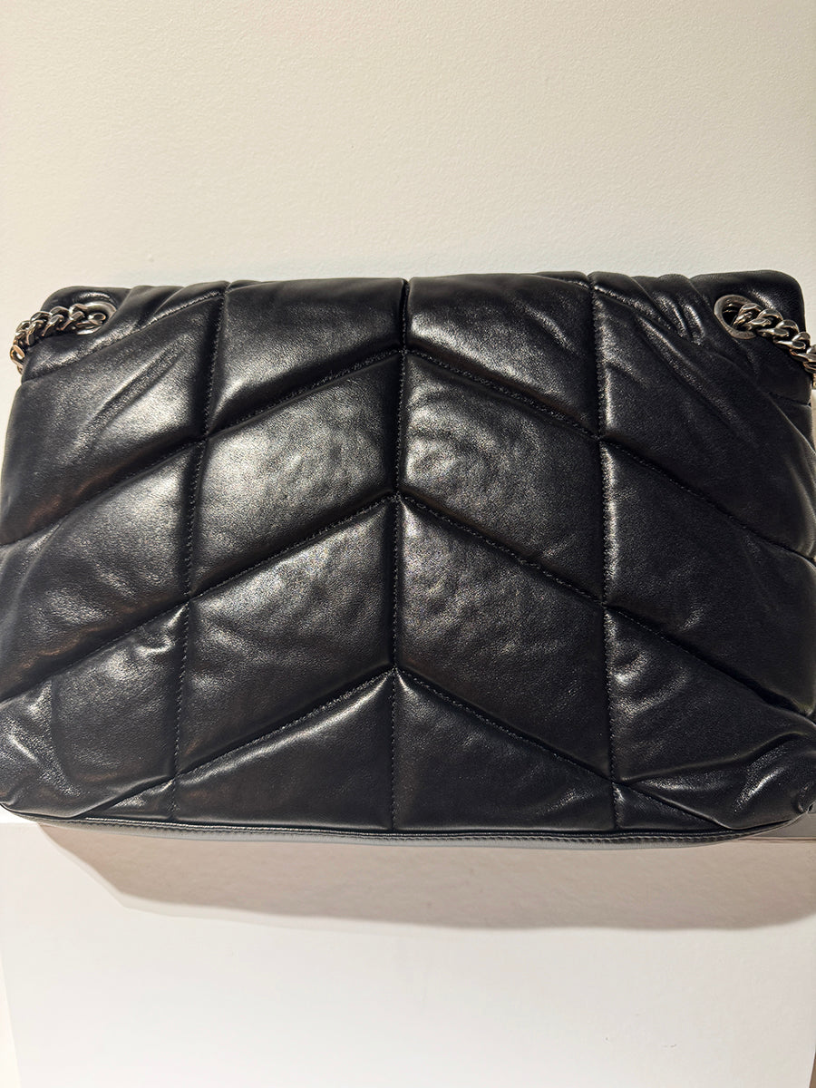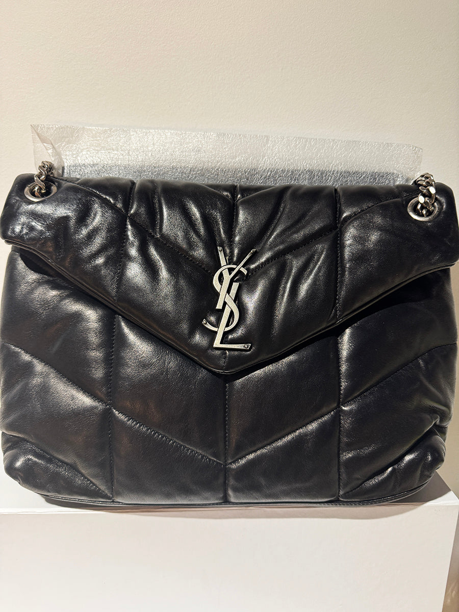 Loulou Puffer Medium Black Quilted Shoulder Bag