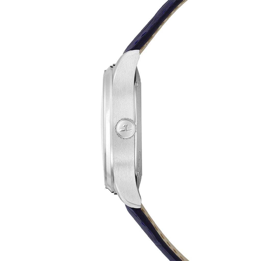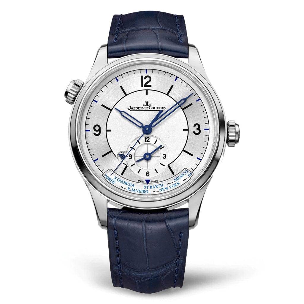 This timepiece comes in a 39 mm stainless steel case, silver dial, 2nd time zone, hours, minutes, seconds and 24 city time zone, on a blue alligator strap. Powered by automatic movement, calibre 751G, this watch has a power reserve of 65 hours and is water resistant to a depth of 50 meters.