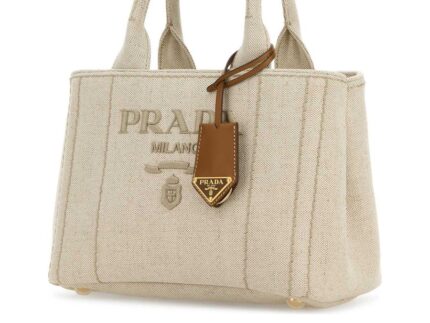 Two-Tone Canvas and Leather Large Sac de Jour Handbag