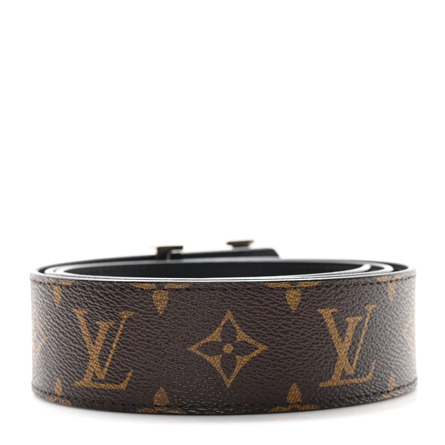This is an authentic LOUIS VUITTON Monogram 40mm LV Initiales Belt size 90 or 36. This belt is crafted of classic Louis Vuitton monogram coated canvas in brown on one side and smooth black leather on the other. It features a bold gold-toned signature LV buckle.