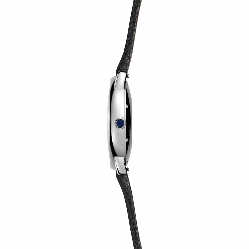 Incorporating Roman numerals, blue apple-shaped hands, a winding mechanism crowned with a sapphire and a rail-track minute circle: the Ronde Louis Cartier watch is a classic timepiece by Cartier.