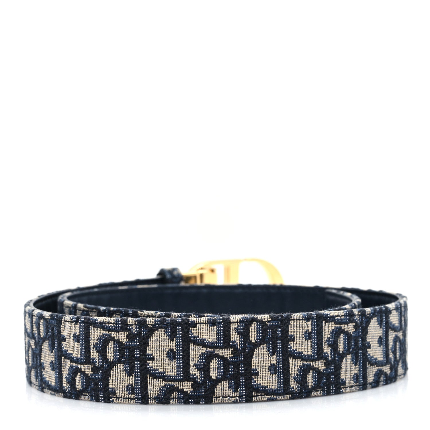 This is an authentic CHRISTIAN DIOR Oblique 30 Montaigne 35mm Belt size 90 or 36 in Blue. This lovely belt is crafted of blue Dior monogram fabric and calfskin leather on the reverse which features a gold Dior buckle.