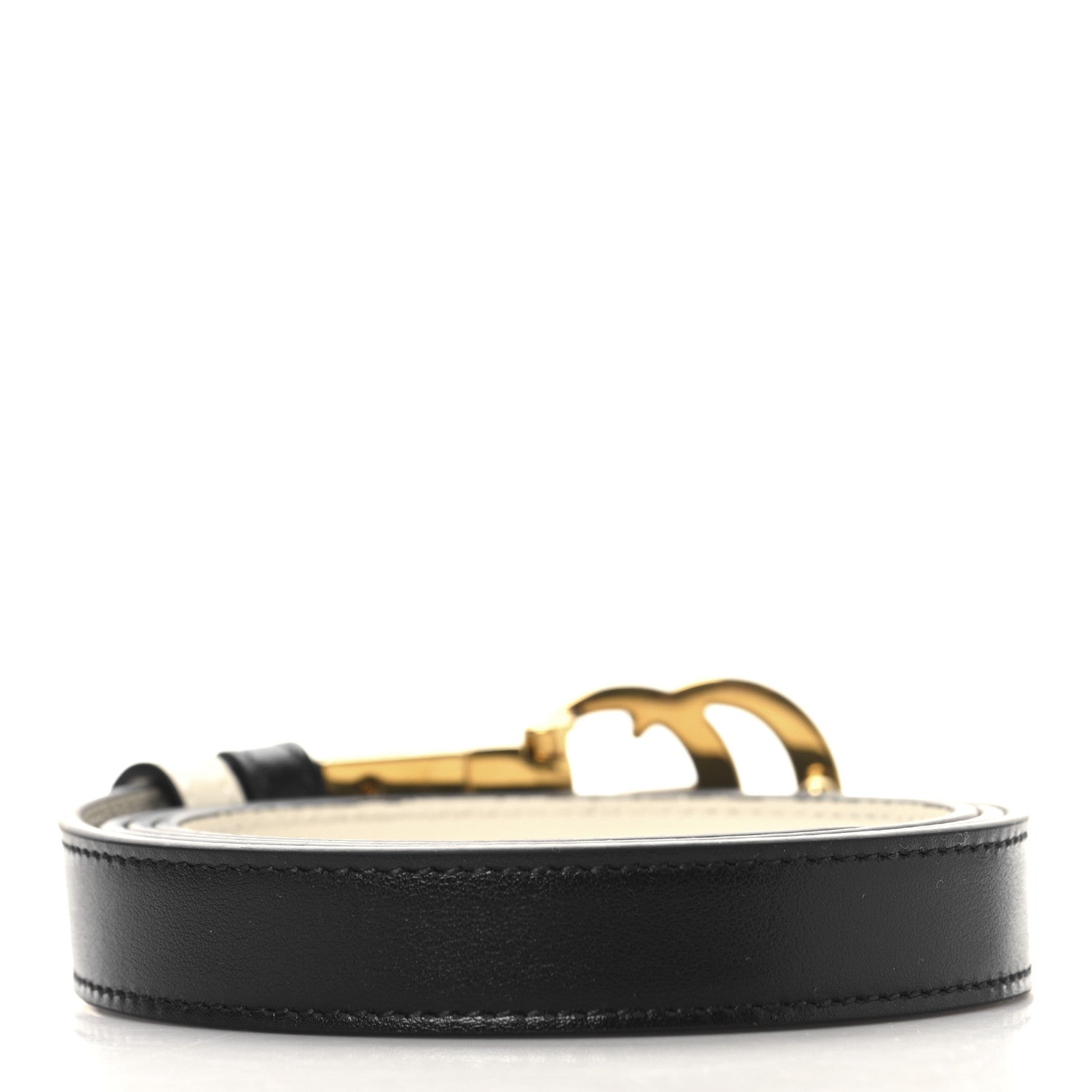 This is an authentic GUCCI Plutone Calfskin Double G Reversible 20mm Belt size 100 or 40 in Black and White. This stylish belt is crafted of calfskin leather in black. The belt features an interlocking GG aged gold buckle and a white interior.