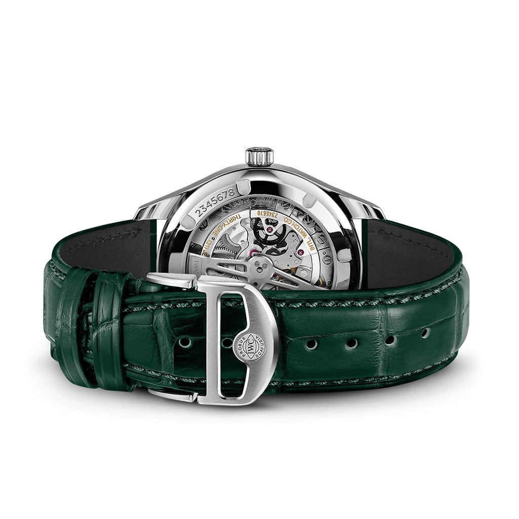 Stainless steel case, Automatic, self-winding, Diameter 40.4 mm, Green alligator leather strap, Strap width 20.0 mm.