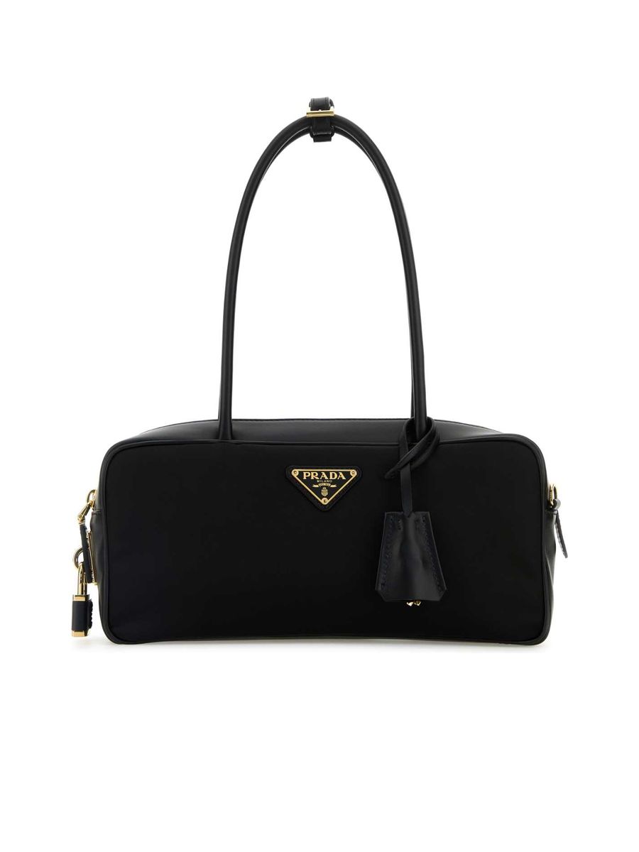Re-Nylon and Leather Small Top-Handle Bag with Padlock