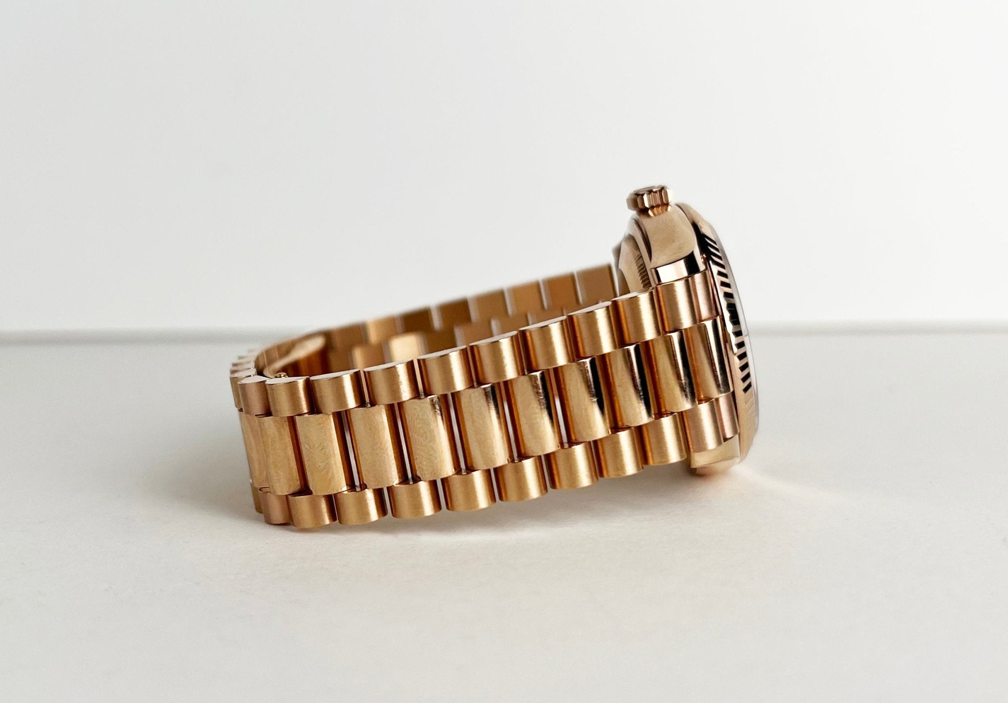 标签: 1000-2000, 30000-40000, 36 mm, brown, day-date, fluted, luxury-time-nyc-inc, over-2000, President Bracelet, Rolex, Rose Gold, Unisex, watch