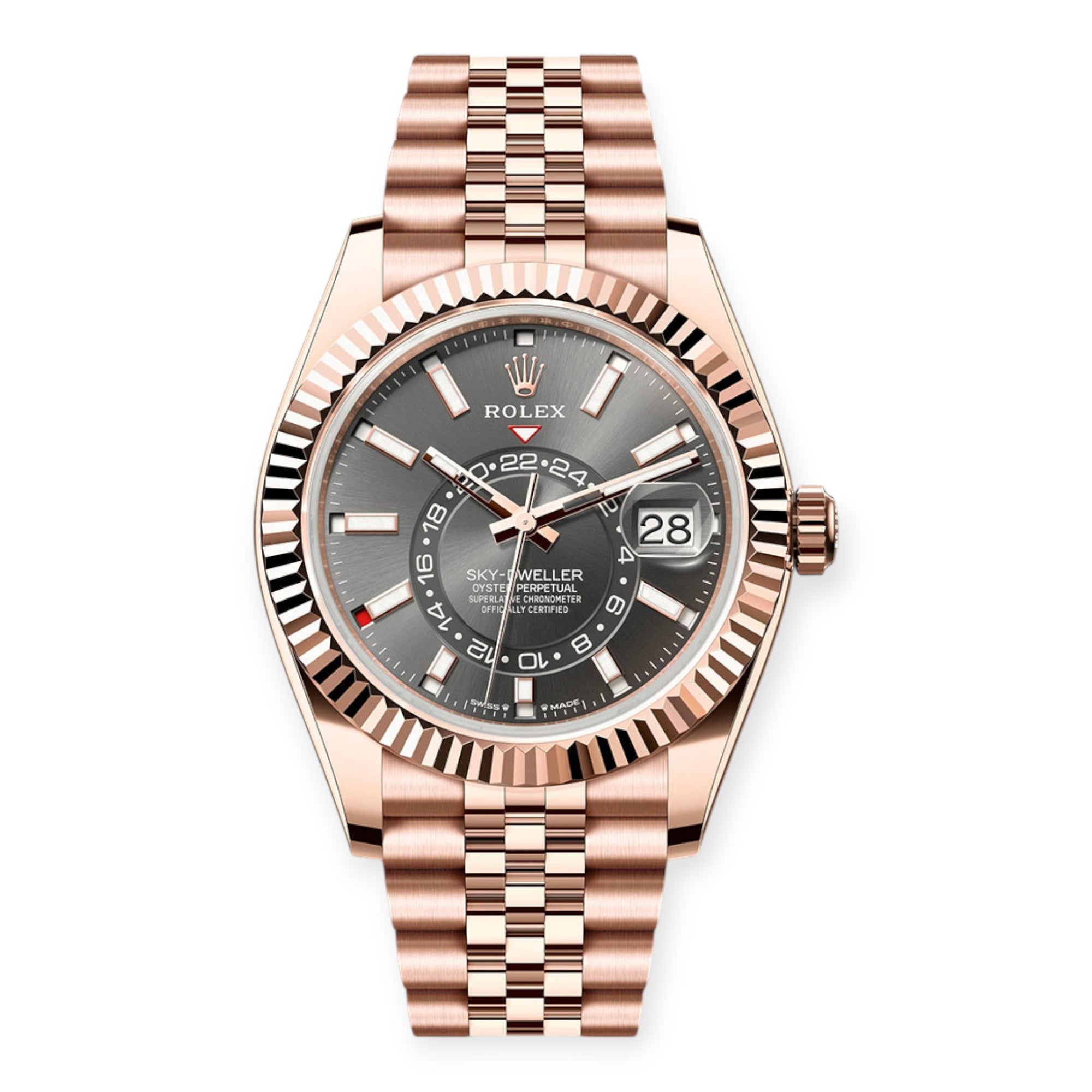 Rolex Everose Gold Sky-Dweller 336935 Slate Index Dial On a Jubilee Bracelet