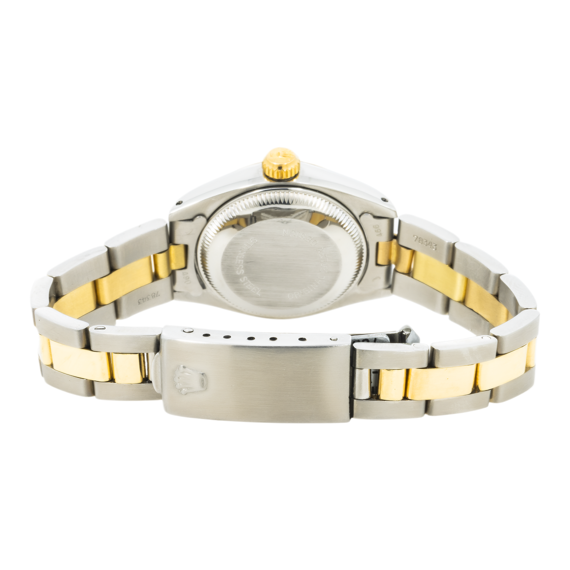 A vintage gem with distinct personality, this Rolex Lady-Datejust 6917 features a champagne Arabic numeral dial, rarely seen in this configuration. Crafted from stainless steel and 14k yellow gold, the 26mm case is paired with a sleek Oyster bracelet, lending a sportier, more streamlined look compared to the traditional Jubilee style. Powered by Rolex’s automatic Caliber 2035, this timepiece blends classic Datejust design with a unique, collector-favored dial. A standout piece for those who appreciate vintage charm with refined luxury.