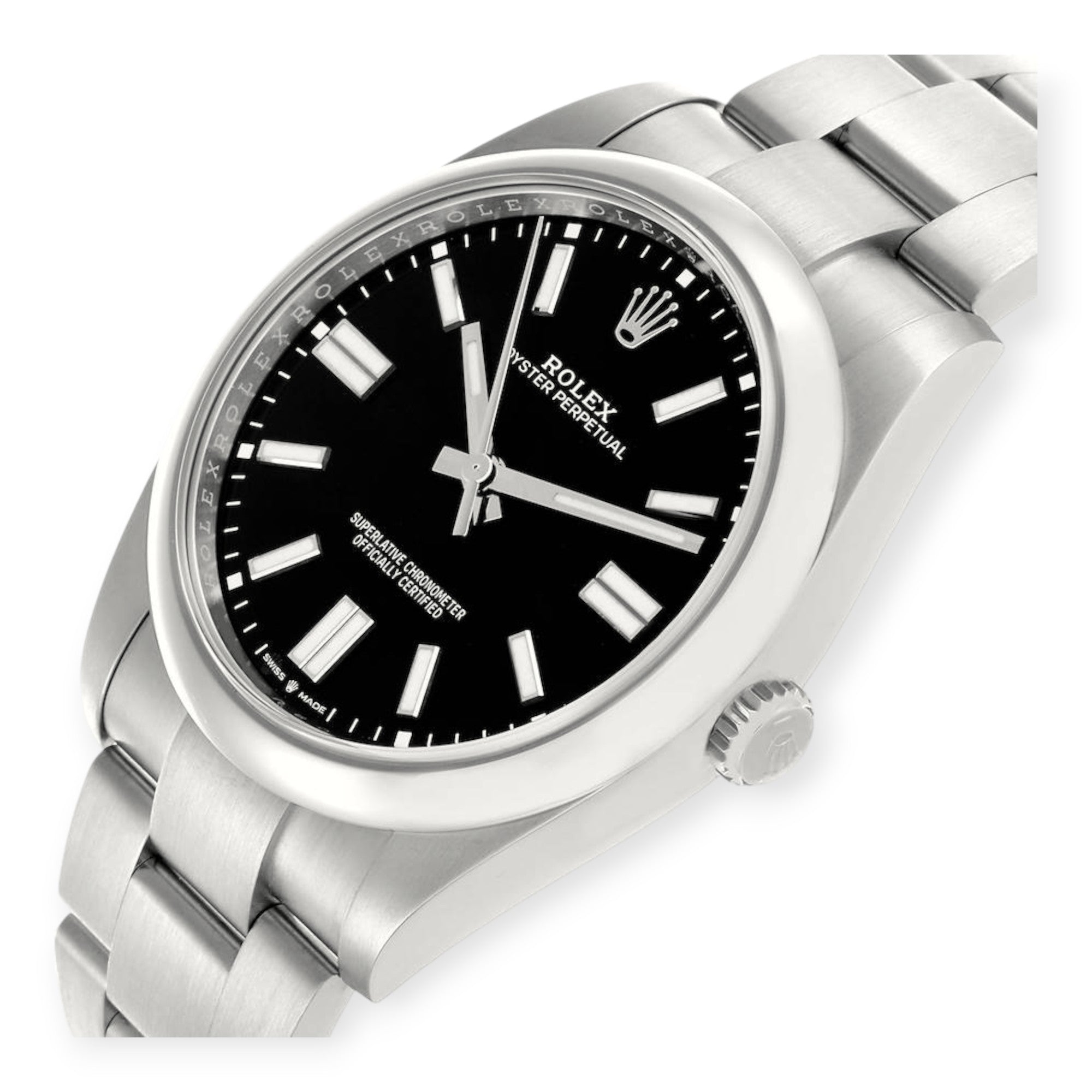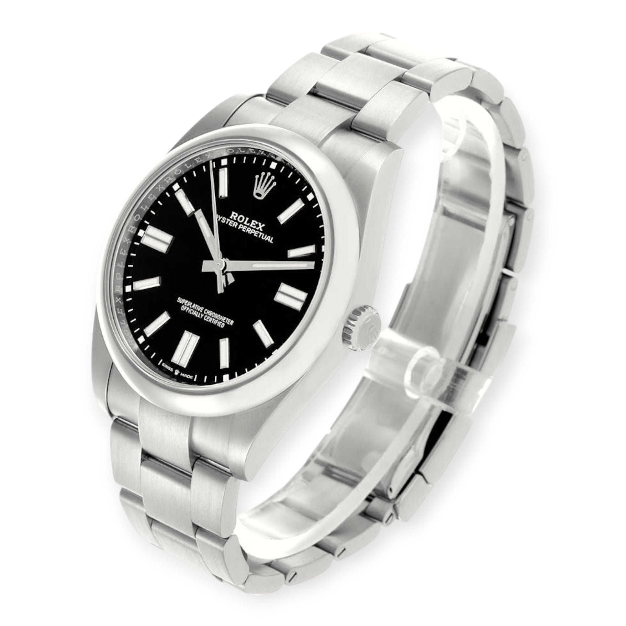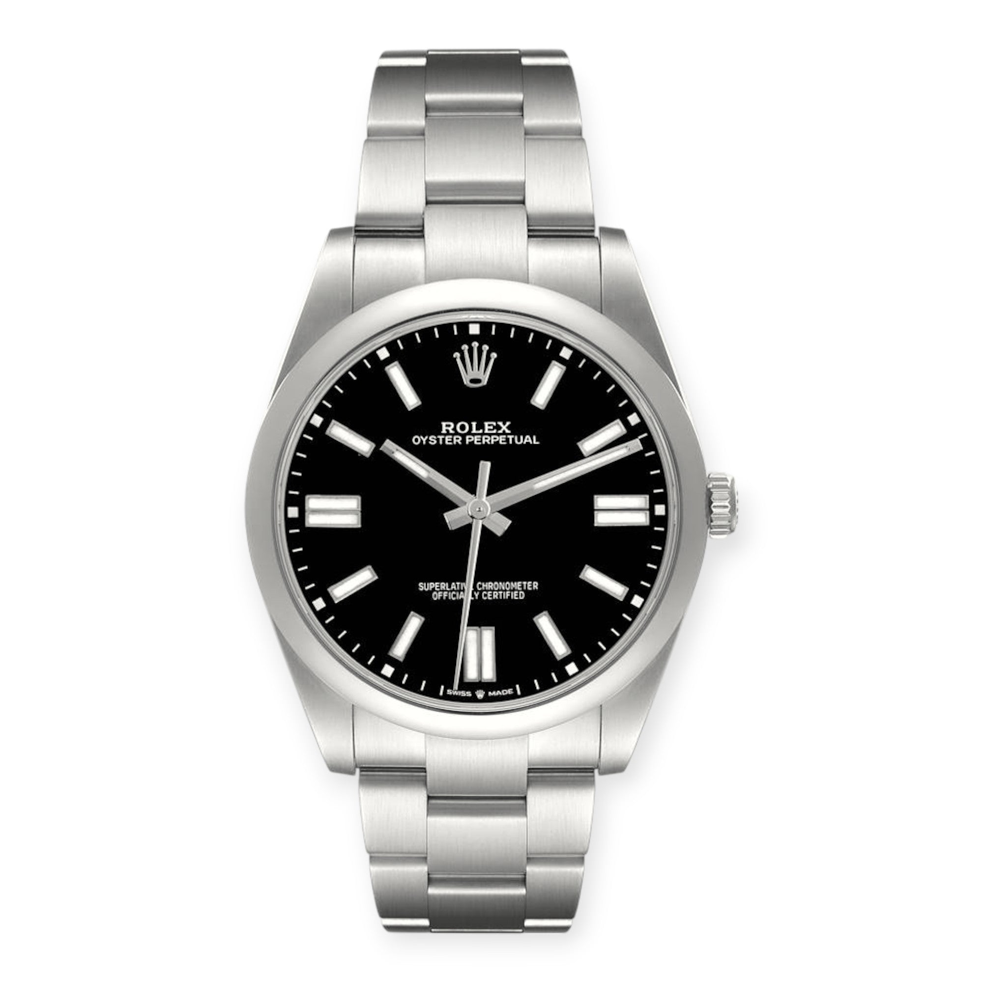 Case: Stainless steel case 41 mm in diameter. Rolex logo on the crown.
