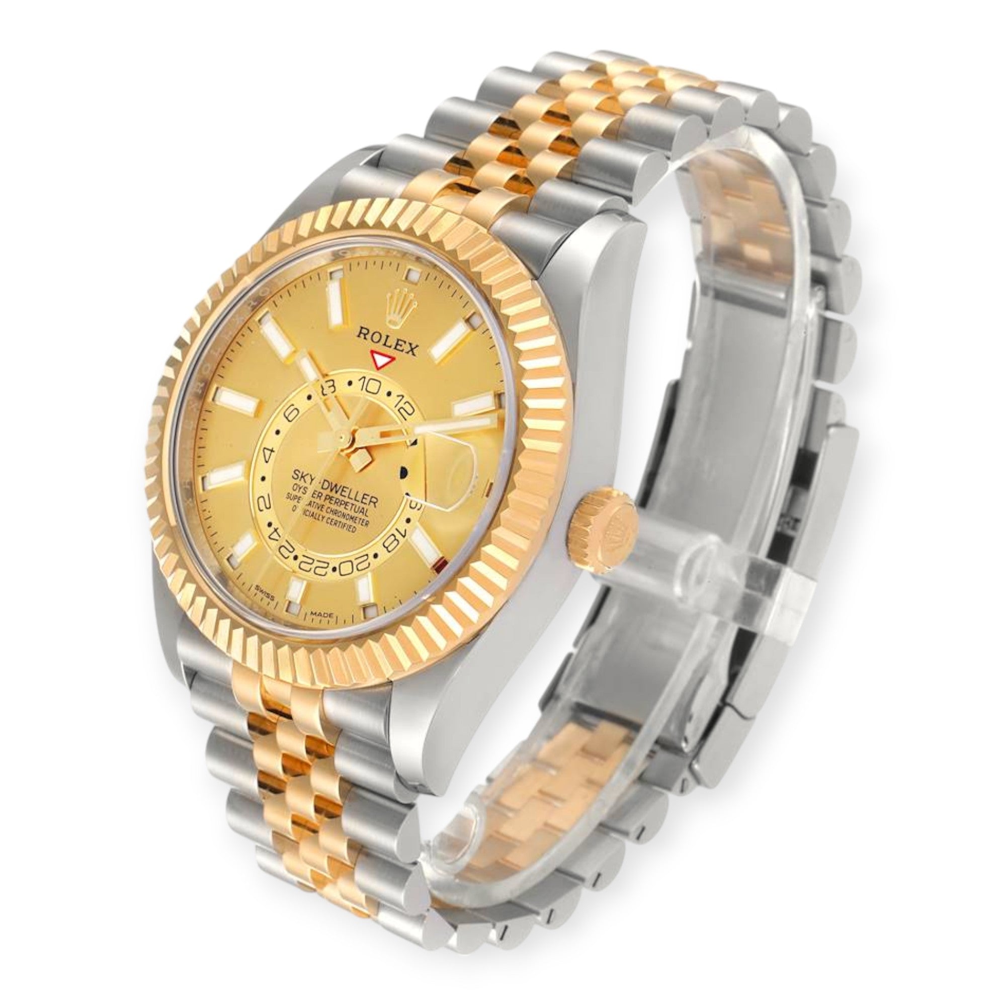 Rolex Sky Dweller Stainless Steel and Yellow Gold Jubilee Bracelet Champagne Dial 326933