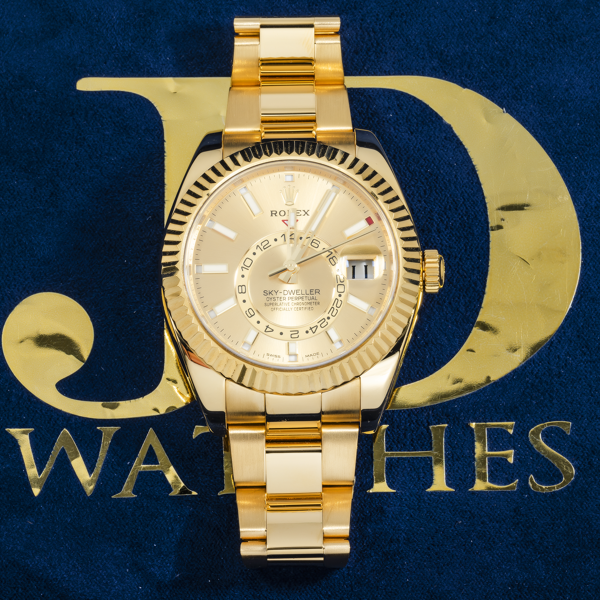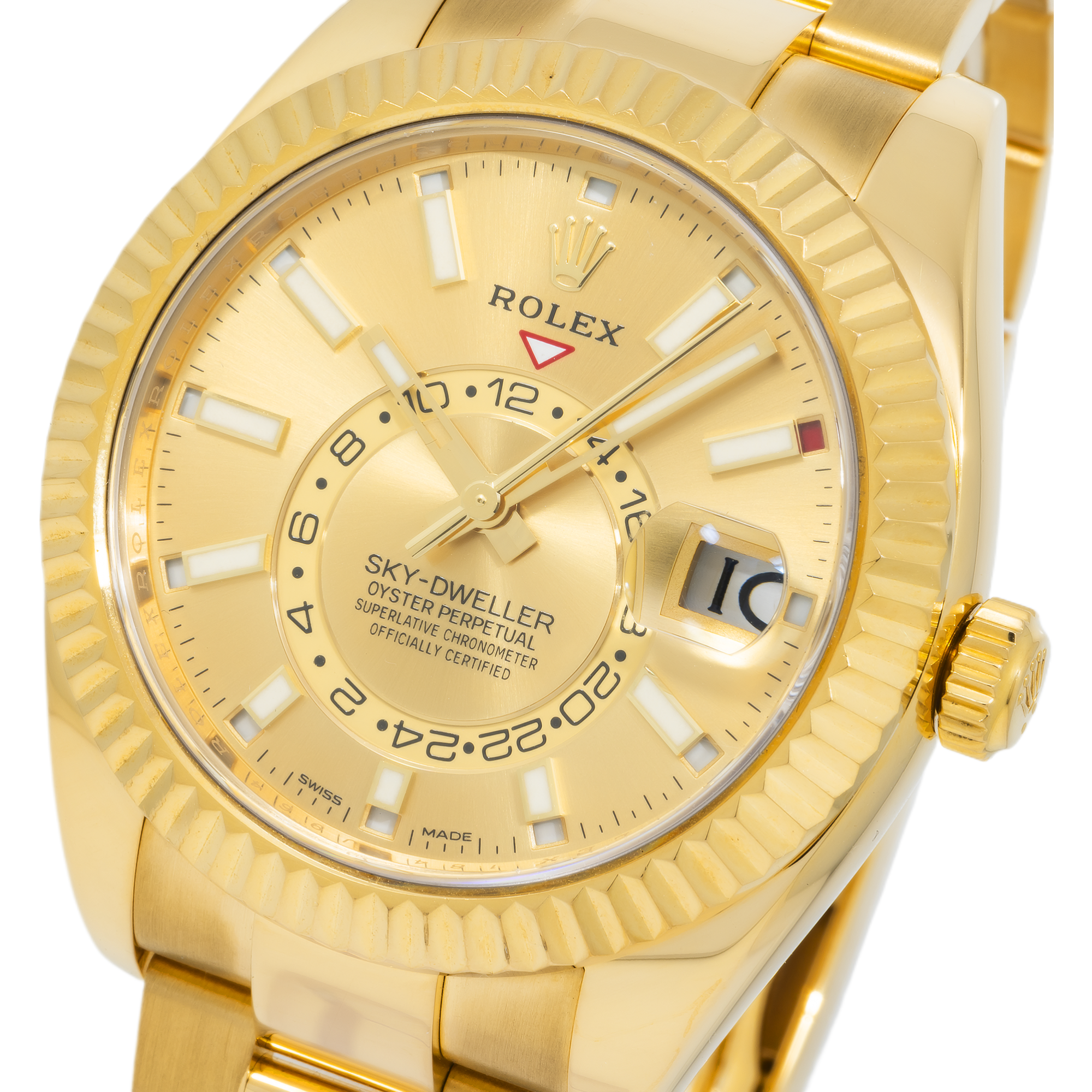 Rolex Sky-Dweller 326938 42mm 18k Yellow Gold Champagne Dial with Champagne Hour Markers – Oyster Bracelet (Year: 2020-2024)
