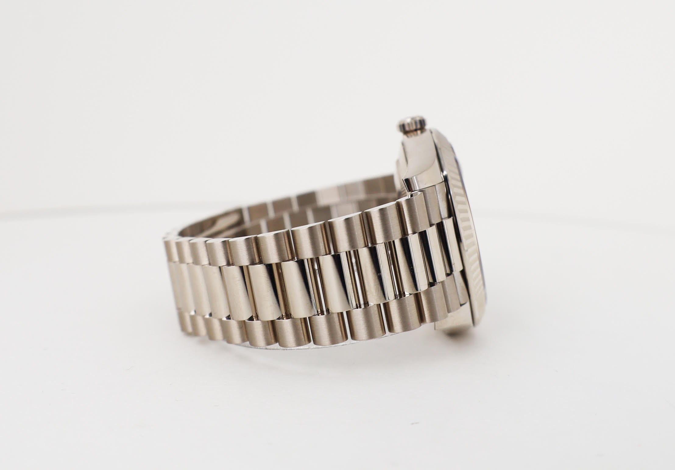 Rolex White Gold Day-Date 40 Watch – Fluted Bezel – Olive Green Bevelled Roman Dial – President Bracelet – 228239 ogrp