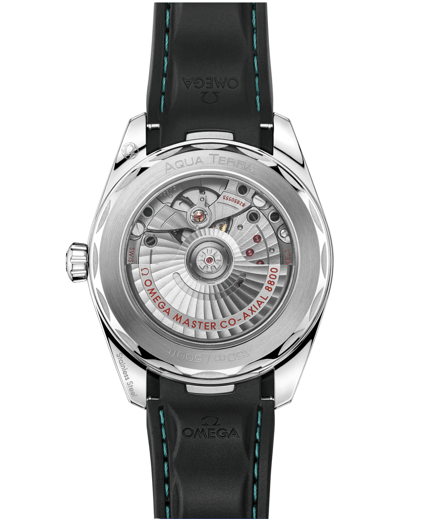 Self-winding movement with Co-Axial escapement. Certified Master Chronometer, approved by METAS, resistant to magnetic fields reaching 15,000 gauss. Free sprung-balance with silicon balance spring, automatic winding in both directions. Rhodium plated finish with Geneva waves in arabesque.