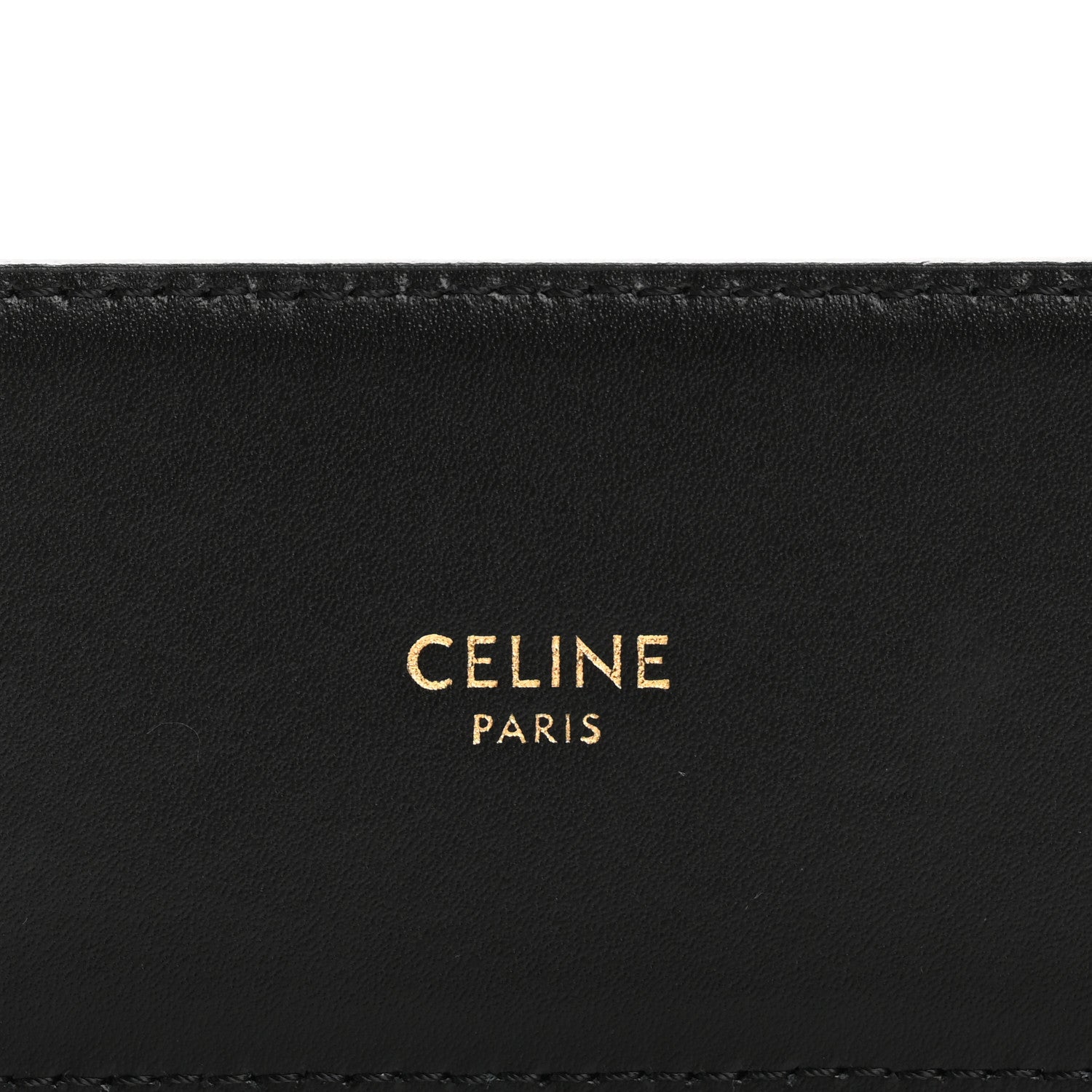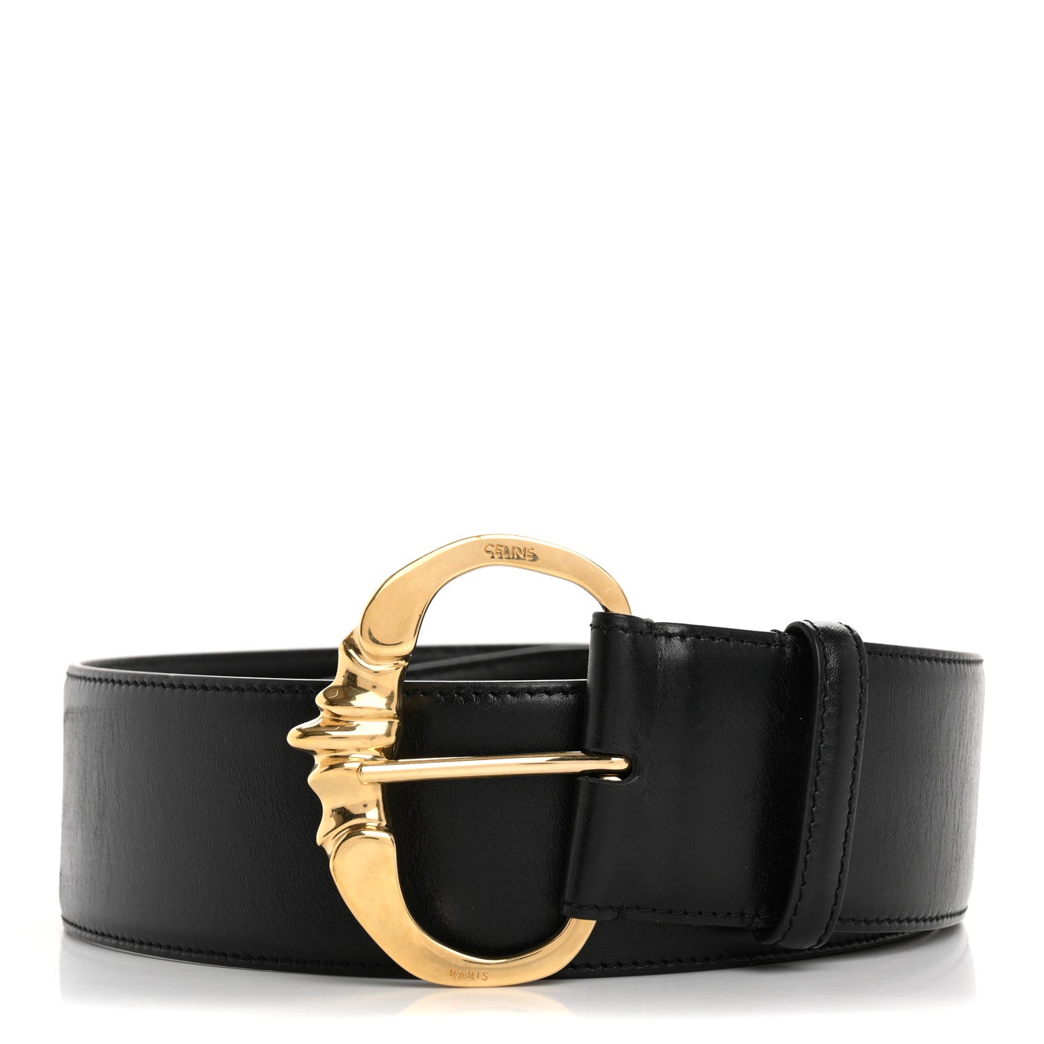 This is an authentic CELINE Smooth Calfskin Camrat Belt size 75 or 30 in Black. This chic belt is crafted smooth calfskin leather in black and features a gold-tone buckle.