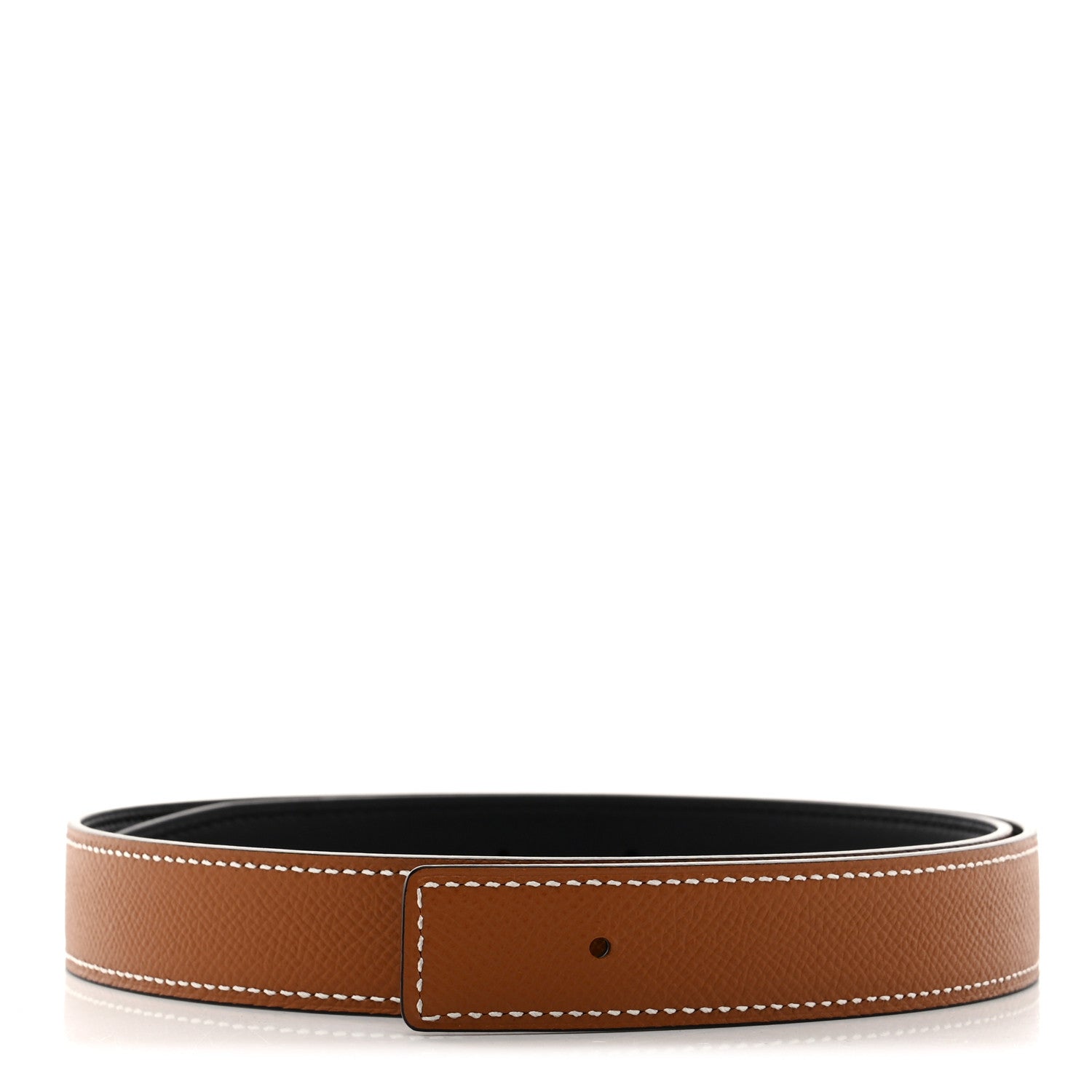 This is an authentic HERMES Swift Epsom 24mm Belt Strap size 75 in Black and Gold. This super chic 24mm belt is crafted of reversible leather with one side swift calfskin leather in black and the reverse in epsom calfskin leather in brown.
