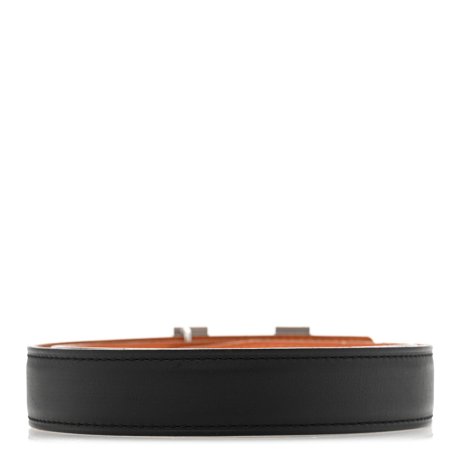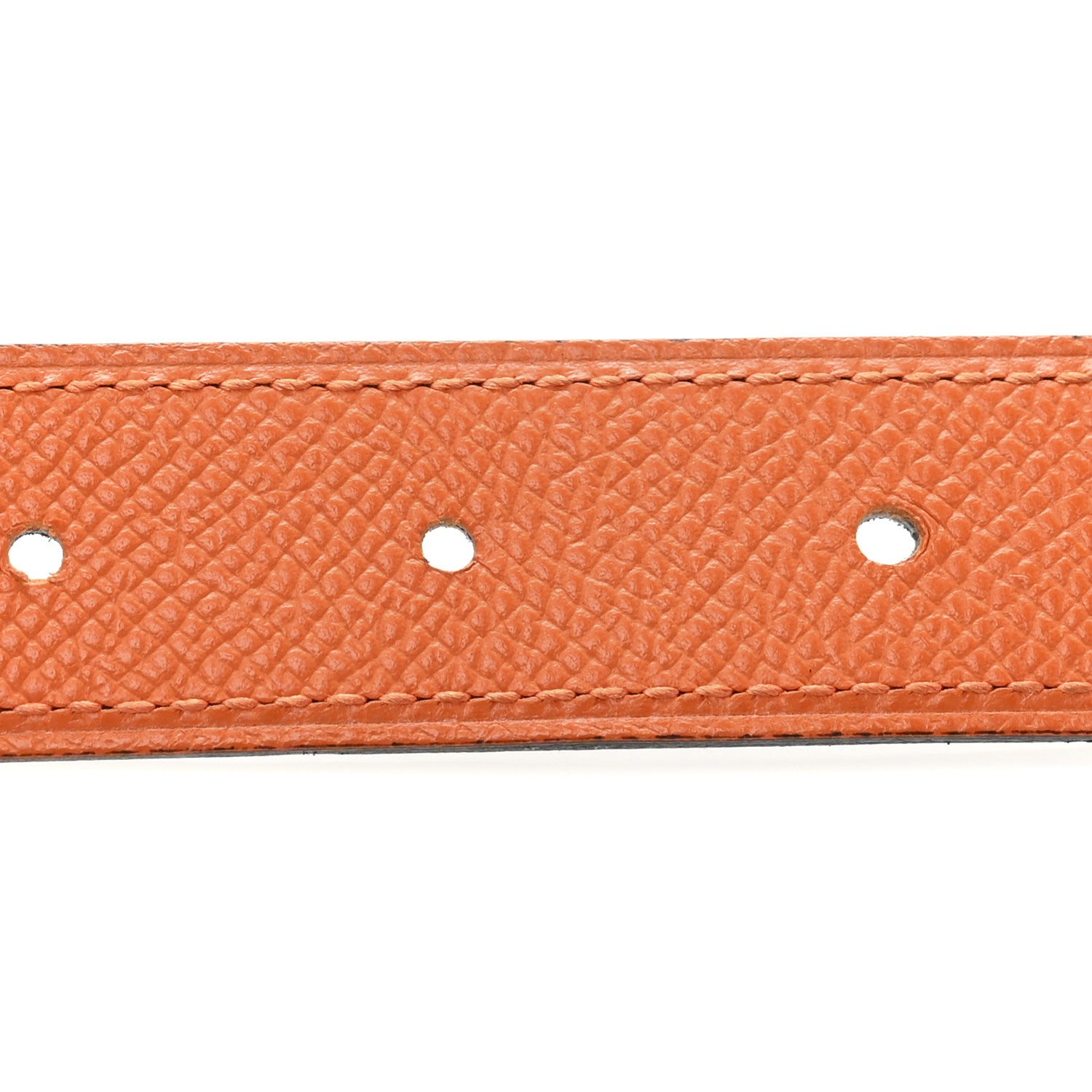 This is an authentic HERMES Swift Epsom 24mm Constance H Belt 65 in Black and Orange. This unisex belt is reversible and crafted of black swift leather to epsom orange. It is completed with a polished palladium plated Hermes H buckle.