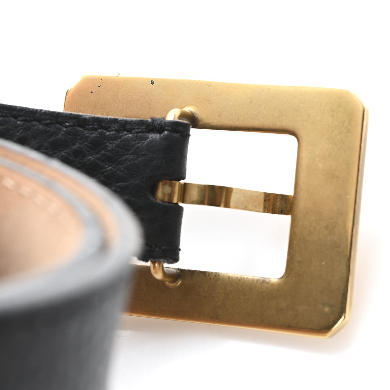 This is an authentic LOUIS VUITTON Taurillon Calfskin Belt size 90 36 in Black. This stylish belt is crafted of fine calfskin leather in black. The belt features a brass Louis Vuitton name logo buckle.