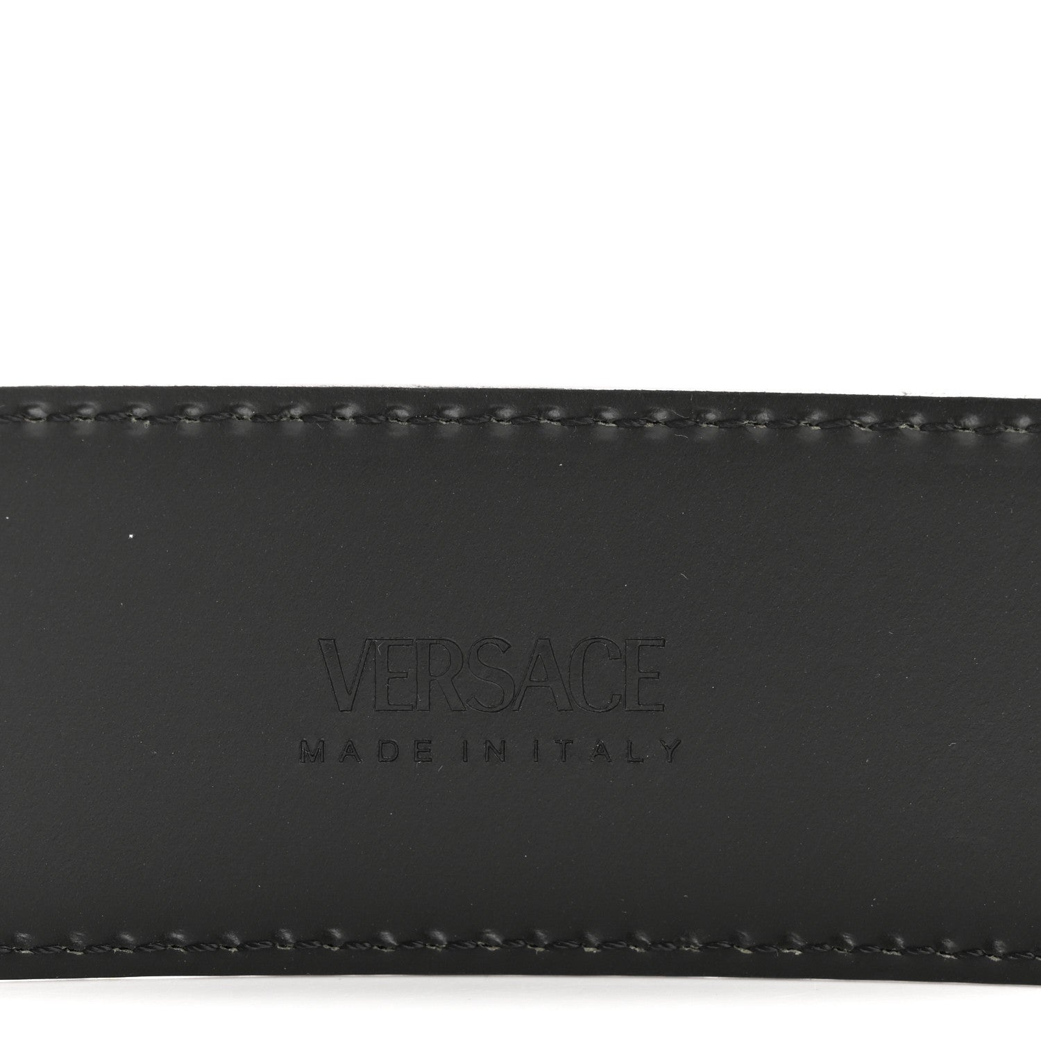 This is an authentic VERSACE Textured Calfskin 4cm Palazzo Medusa Belt size 90 or 36 in Black. This chic belt is crafted of calfskin leather in black and features an polished silver Medusa Medallion buckle.