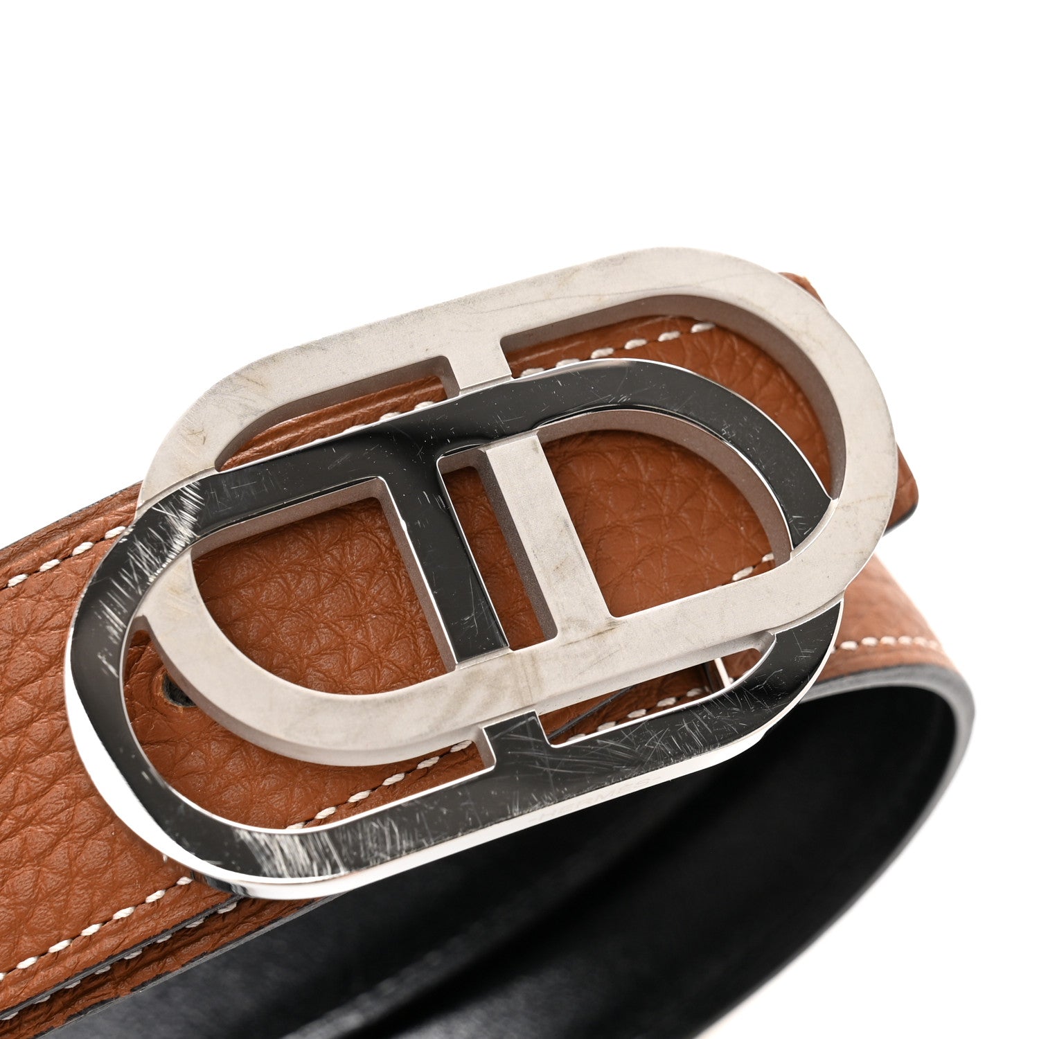 This is an authentic HERMES Togo Box 32mm Maillon H Belt 90 in Gold and Black. This stylish reversible belt is crafted of box calfskin leather in black, with a brown togo leather on the reverse, and features a polished palladium maillon buckle.